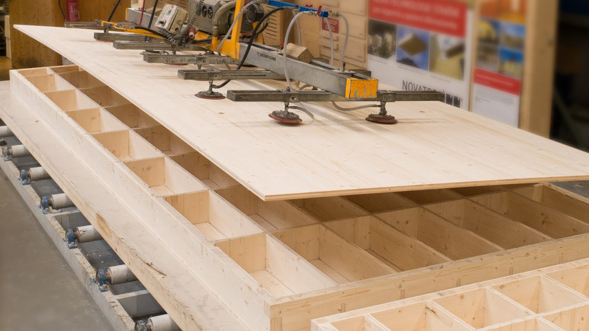 Střešní panely OPEN jsou difuzně otevřenou verzí panelů ELEMENT, které byly vyvinuty před necelými dvaceti lety ve spolupráci se švýcarským expertem na dřevostavby Hermannem Blumerem, jehož jméno lze spojit s několika průlomovými dřevostavbami po celém světě – například Muzeem moderního umění v Metz nebo první polární stanicí s nulovými emisemi. Když vznikala první skica elementu, asi nikoho nenapadlo, že se stane doslova základním kamenem nového stavebního systému NOVATOP. A zároveň elementem, který svou flexibilitou otevře prostor pro velmi specifické požadavky architektů. „Každý ELEMENT tvoří nosná spodní vícevrstvá deska (biodeska), jejíž tloušťka je závislá na požadované požární odolnosti konstrukce. Na ni jsou nalepena příčná a podélná žebra, jejichž výška definuje nosnost elementu. Konstrukce se uzavírá horní vícevrstvou deskou, v případě OPEN panelu se nezaklápí. Prostory mezi žebry se dají plnit izolací. Pro opracování se používá CNC zařízení, vysoká přesnost je zajištěna přenosem dat v Cadworku přímo do obráběcího centra,“ uzavírá popis výroby Josef Mynář.