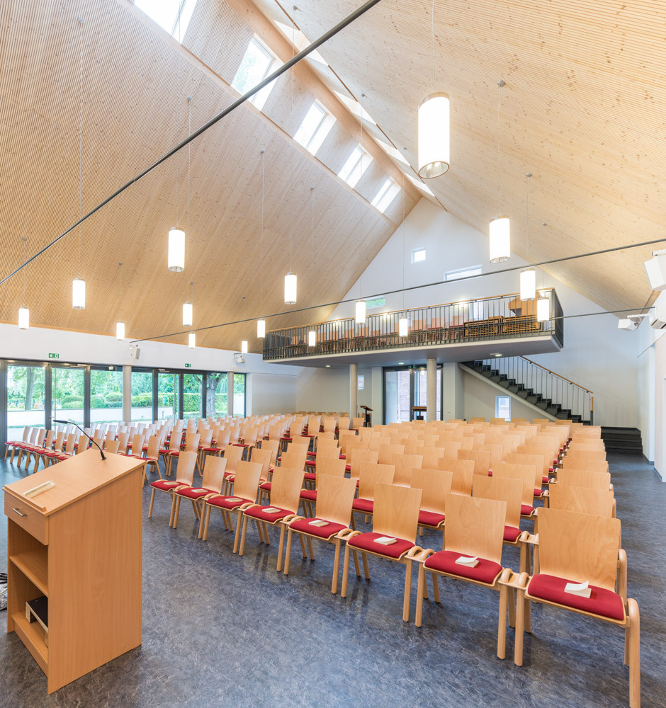 Rekonstrukcí a rozšířením malé obřadní síně v Bádensku-Württembersku vznikl nový reprezentativní prostor, který zaujme výrazným otevřeným krovem. Zvenčí poměrně nenápadná stavba tak v sobě skrývá něco skutečně speciálního.