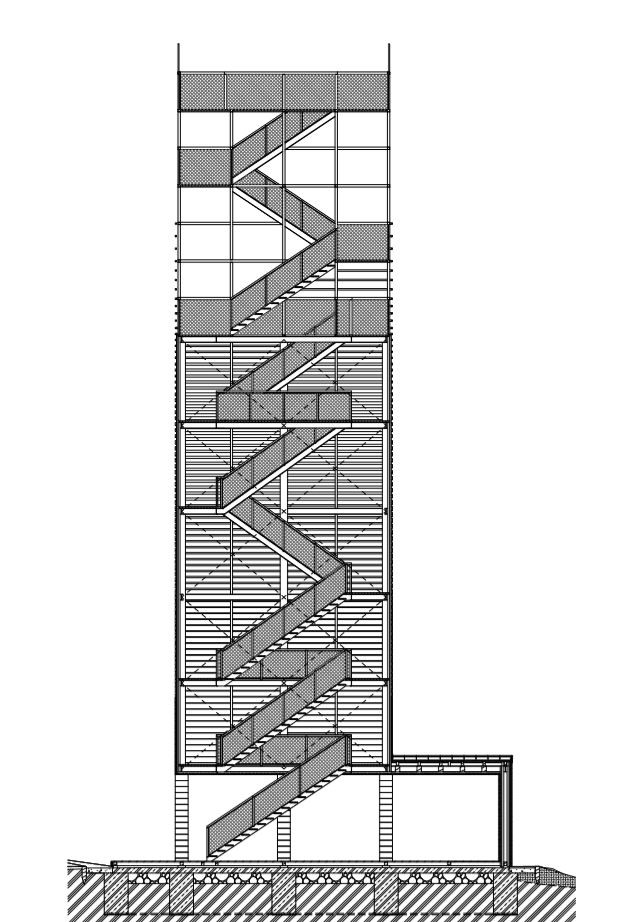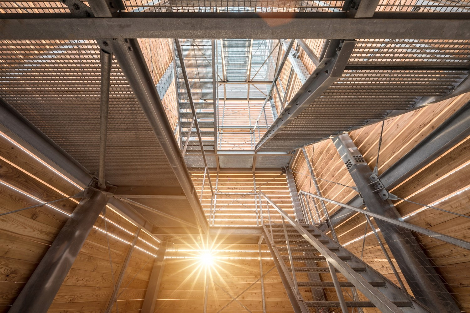 Nosný systém věže je navržen jako ocelový skelet. Dřevěný obklad konstrukce se přitom směrem vzhůru postupně „rozplývá“ v okolí. Vrchní část věže tak tvoří již pouze otevřená ocelová konstrukce, která umožňuje výhledy do okolní krajiny z různých výškových úrovní. Zmiňované rozplývání konstrukce je také symbolem určitého pouta mezi pevností země a neuchopitelností nebe, k němuž se návštěvník musí přiblížit, aby si mohl vychutnat výhled.