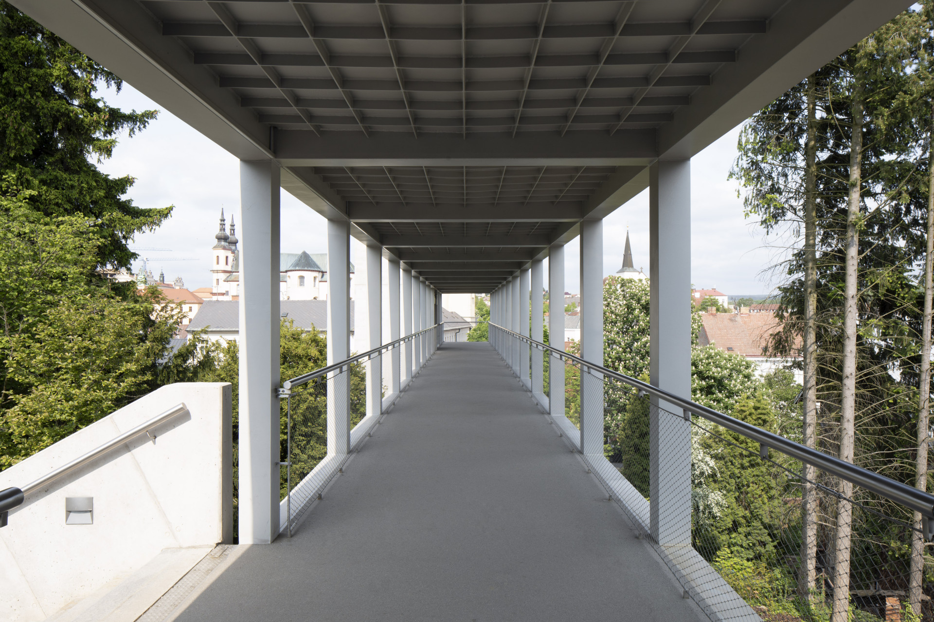 Vysočina je kopcovitá, stejně tak Litomyšl. Výškové rozdíly překonává taky nová lávka, nevede z kopce na kopec ale do údolí k řece Loučné. Konstrukce je to nápadná, ční do výšky a v ulici vedoucí na náměstí se chová jako obelisk – vznikla zde barokně symetrická kompozice.
