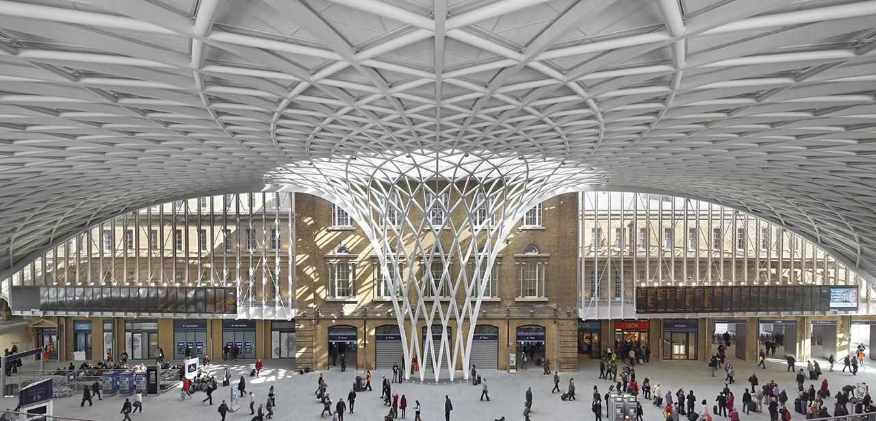 John McAslan + Partners rozdělili projekt do tří okruhů a v první polovině 2012 mohli opět první z každoročních 50 mil. uživatelů King´s Cross Station obdivovat citlivě zrenovovanou původní fasádu zahrnutou do kulturního dědictví Británie, zrekonstruované nádražní objekty i vysoce expresivní novou halu zastřešenou polokruhovitou kupolí. Především nová konstrukce západní přístavby získala pro svou graciézní klenbu mnoho příznivců. Z dvacetimetrových centrálních sloupů se vějířovitě klene ocelové pletivo, jemně poodhaluje 150 m širokou původní fasádu z cihlového zdiva a zastřešuje neuvěřitelných 7500 m2 užitné plochy. Pod 1212 trojúhelníkovými panely střešní kupole se skrývá množství obchodů, včetně vložených objektů určených k čekání na příslušné spoje a k občerstvení. Svým vzdušným pojetím navozuje „lehká“ konstrukce dojem spíše letištní haly než klasického nádraží, spoléhá především na přirozený zdroj světla a stává se spojovacím článkem hned několika tratí londýnského metra s přilehlými stanovišti dalších dopravních prostředků – autobusů a taxi služby. Nová hala je samozřejmě provázána se svým okolím i samotnými nástupišti po-, pod- i nadzemní komunikací, včetně lehkých mostních konstrukcí. Vzhledem k tomu, že původní nádražní budova nesměla být zatížena přístavbou, nese na svých bedrech celou váhu nové haly 16 nosných sloupů rozmístěných jako stromořadí po obvodu stavby. Předseda mezinárodní poroty NLA, Peter Murray, zdůvodnil ocenění stavby slovy: „Naše porota byla ohromena dramatickým novým prostorem haly King´s Cross Station stejně jako perfektní prací na památkově chráněné stavbě. Tato rovnováha mezi starým a novým je typická pro komplexní rozvoj Londýna.“ Zajímavou tečkou na závěr je i „zelený“ záměr architektů – střechy dvou nástupištních hal jsou pokryty fotovoltaickými panely o ploše 2500 m2, které by měly generovat 10–20 % z celkové elektrické spotřeby King´s Cross Station.