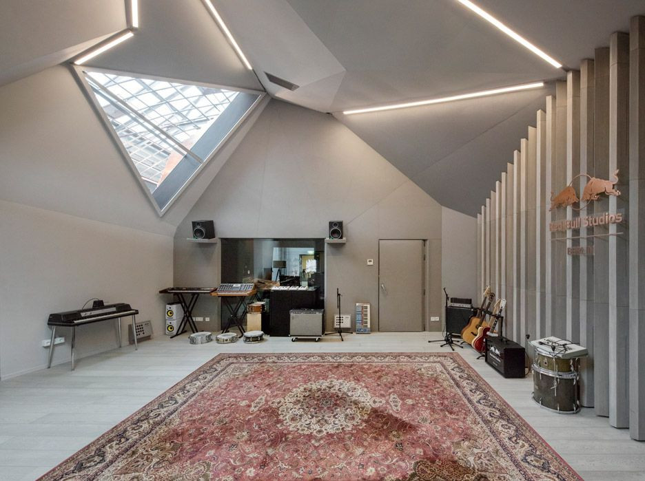 Projekt byl formován akustikou a rozdělen do hranolových ploch, zajišťujících dokonalý zvuk pro nahrávací a mixážní prostory. Velký trojúhelníkový světlík přináší dolů do prostoru přirozené světlo. Přes kilometr měděných pásů spojuje dohromady různorodé tvary, nutné pro různé nahrávací místnosti, a přidává hloubku i rozlišení jednotného prostorového uspořádání.
