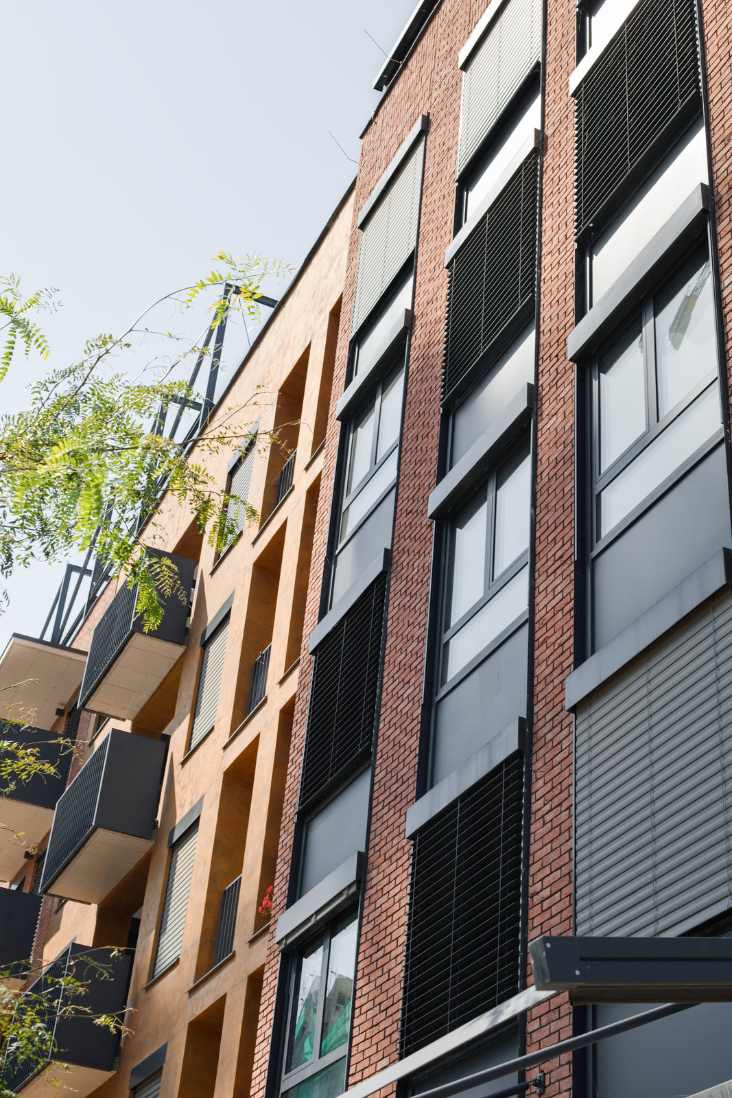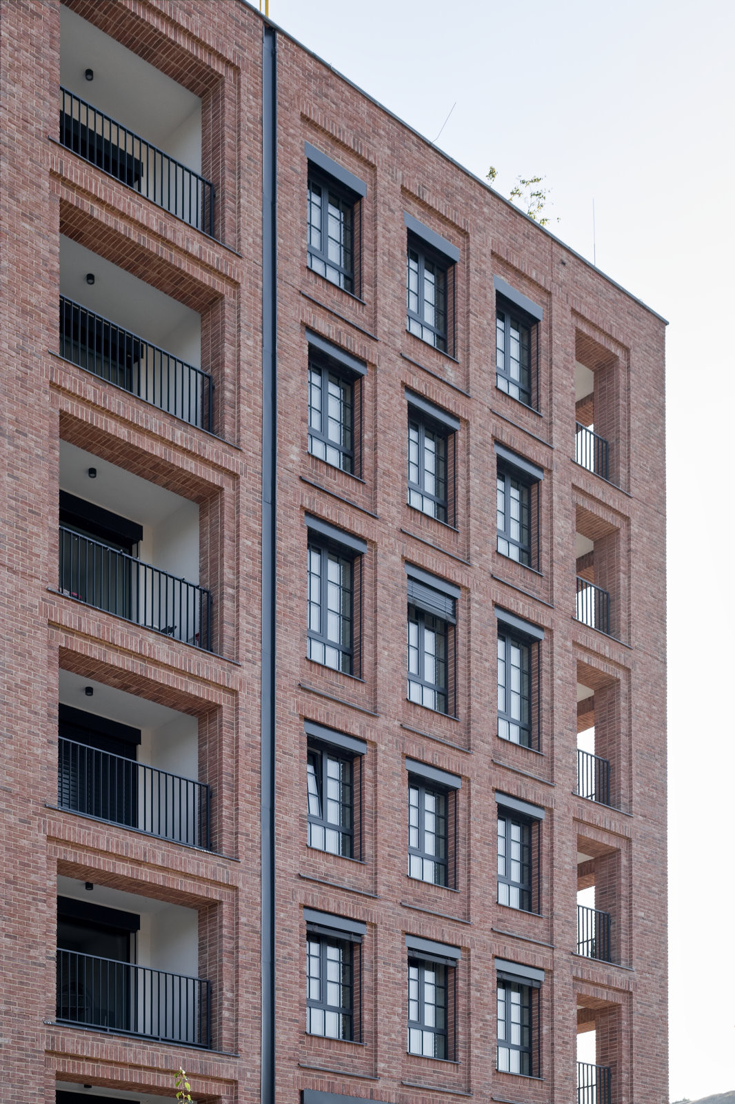 To jsme chtěli, aby každý dům měl trochu jiný výraz a aby se tím narušil ten velký blok. I tady nám pomohly cihly, použily jsme je mnoha různými způsoby. Na nároží Nádražní ulice jsou zapuštěná ostění oken a celá fasáda je pak jakoby rozvlněná. Na druhé straně u Strakonické ulice, tam jsme je zase obrátili. Z rubu, kde je obtisklá vanička raznice, je najednou líc. A při té příležitosti jsme zjistili, že každá raznice je jiná - některé mají takové cuplíky, některé jsou hladké, některé jsou různě deformované. Na fasádě potom vzniká živá kompozice.