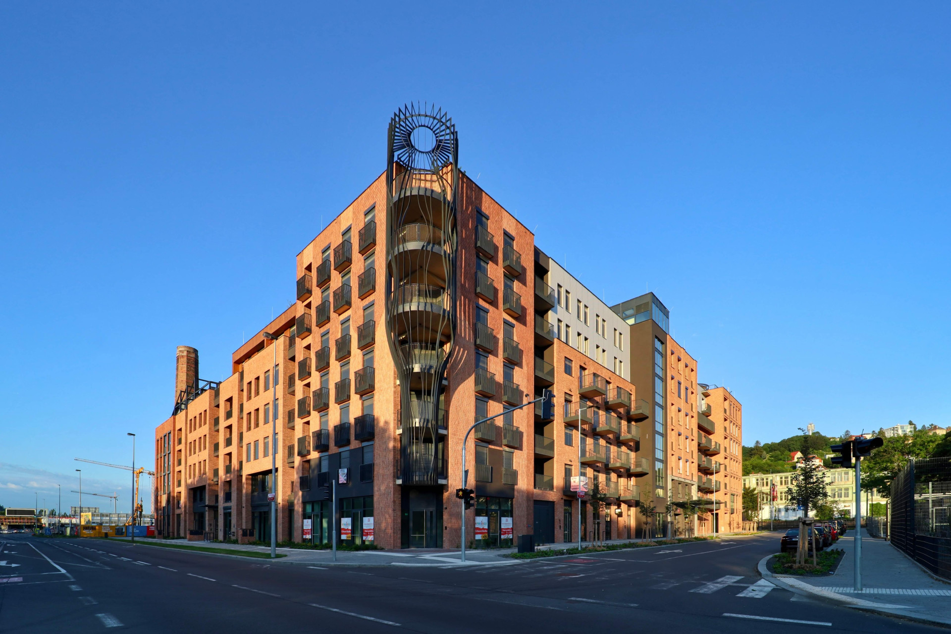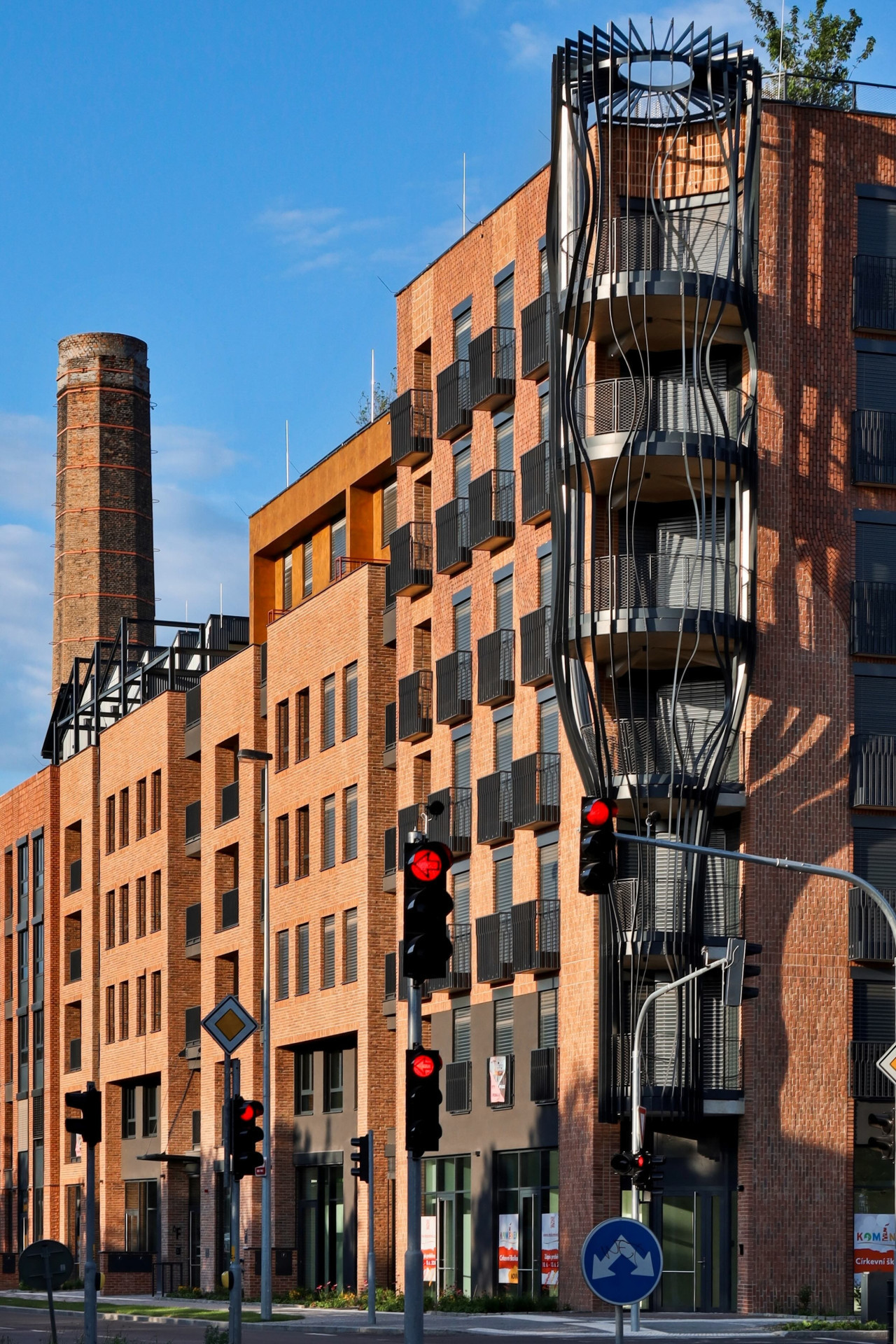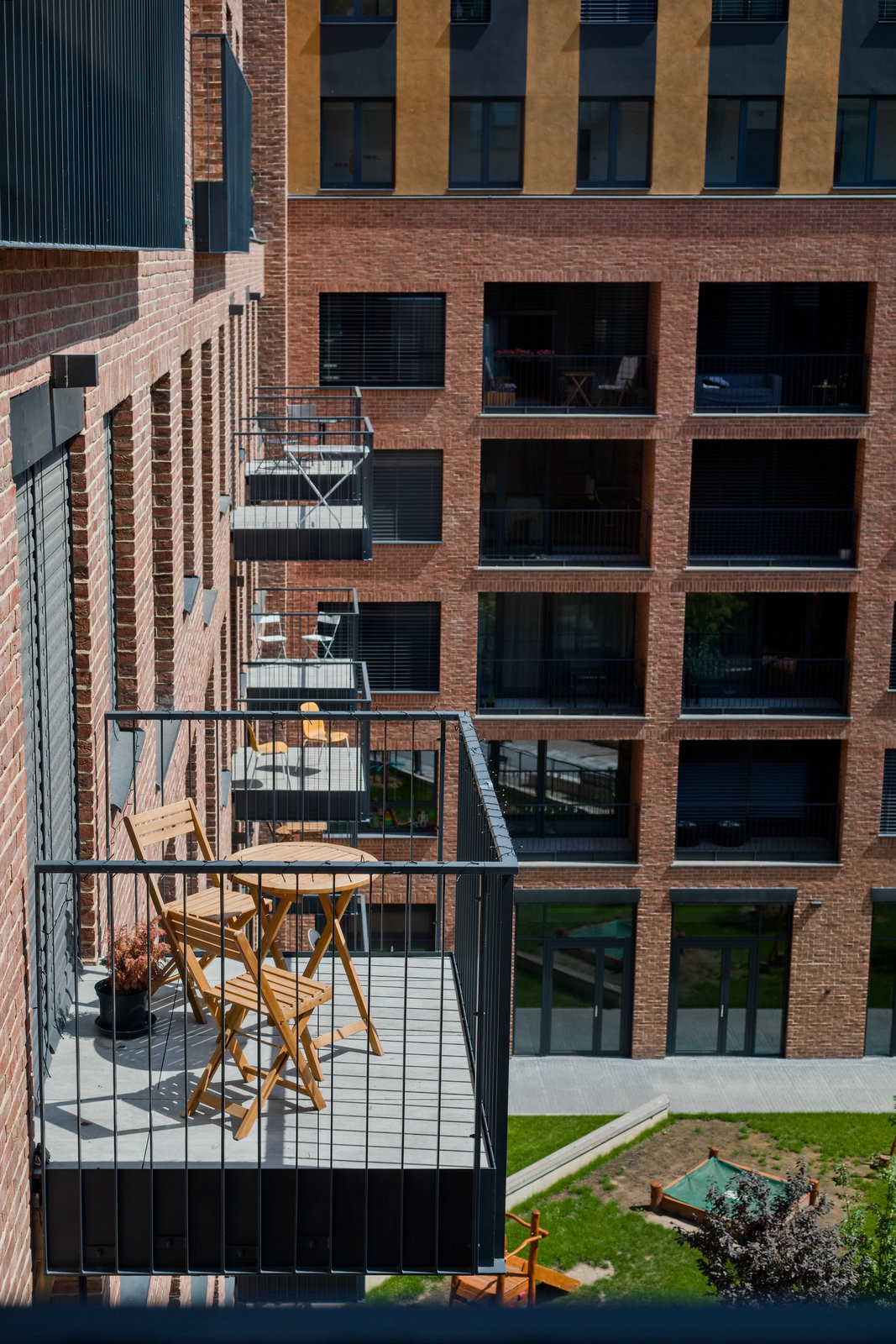 „Flaška“ na nároží vypadá banálně, ale odkazuje na původní místo – na lahve, které se tu kdysi vyráběly a které se tu našly při demolici. Zároveň má funkci, tvoří balkon a kolem něj lamelovou konstrukci, která poskytuje soukromí i výhled. Je to pohledově výrazný a účelný prvek. Právě to považuji za sílu celého konceptu – že z uměleckého nápadu vznikne funkční architektura.