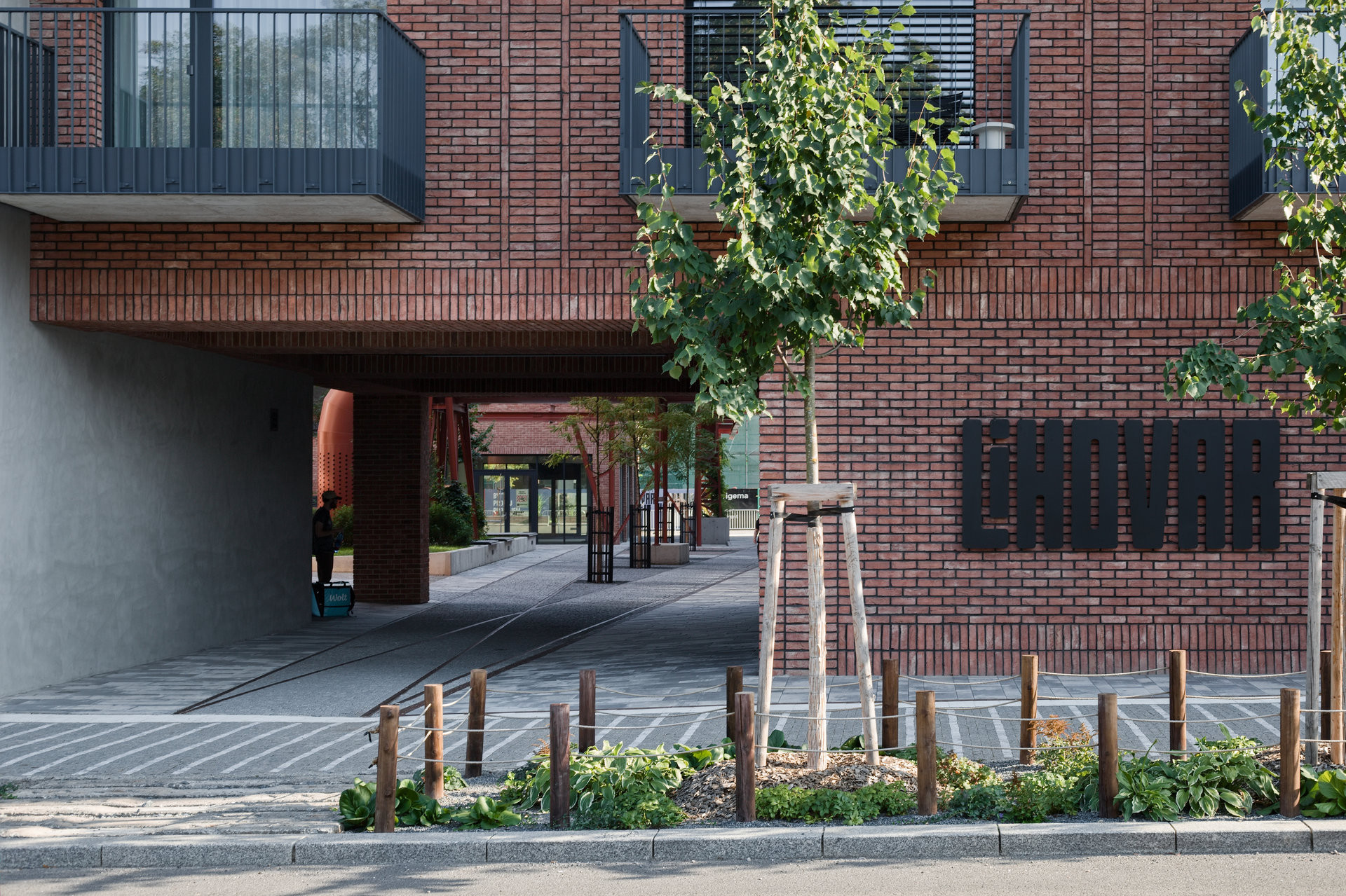 Určitě bylo možné udělat to hrubší a syrovější. Jenže všechno musí být taky použitelné a bezpečné, musí se pod to někdo podepsat. Je to veřejný prostor, nedaleko je školka, museli jsme prostě být opatrní. Ale chtěli jsme ten průmyslový dojem navodit různými dalšími prostředky – například jsme použili nátěr vagónovou hnědou barvou. Naproti je kolejiště, vedle nás je nákladové nádraží a zbyly tu koleje z původní vlečky, takže tahle hněď se sem hodí a taky trochu připomíná odstín rzi.