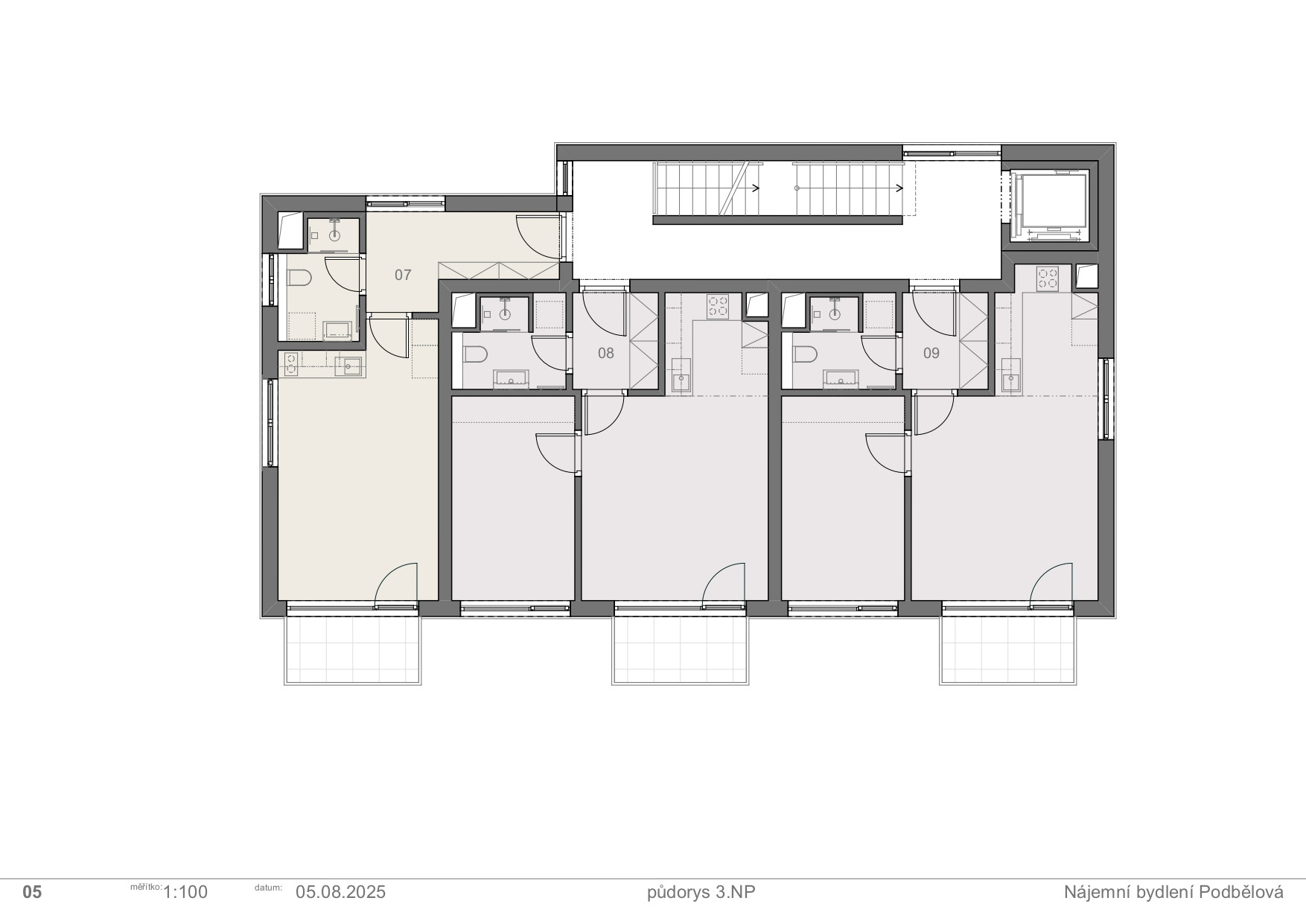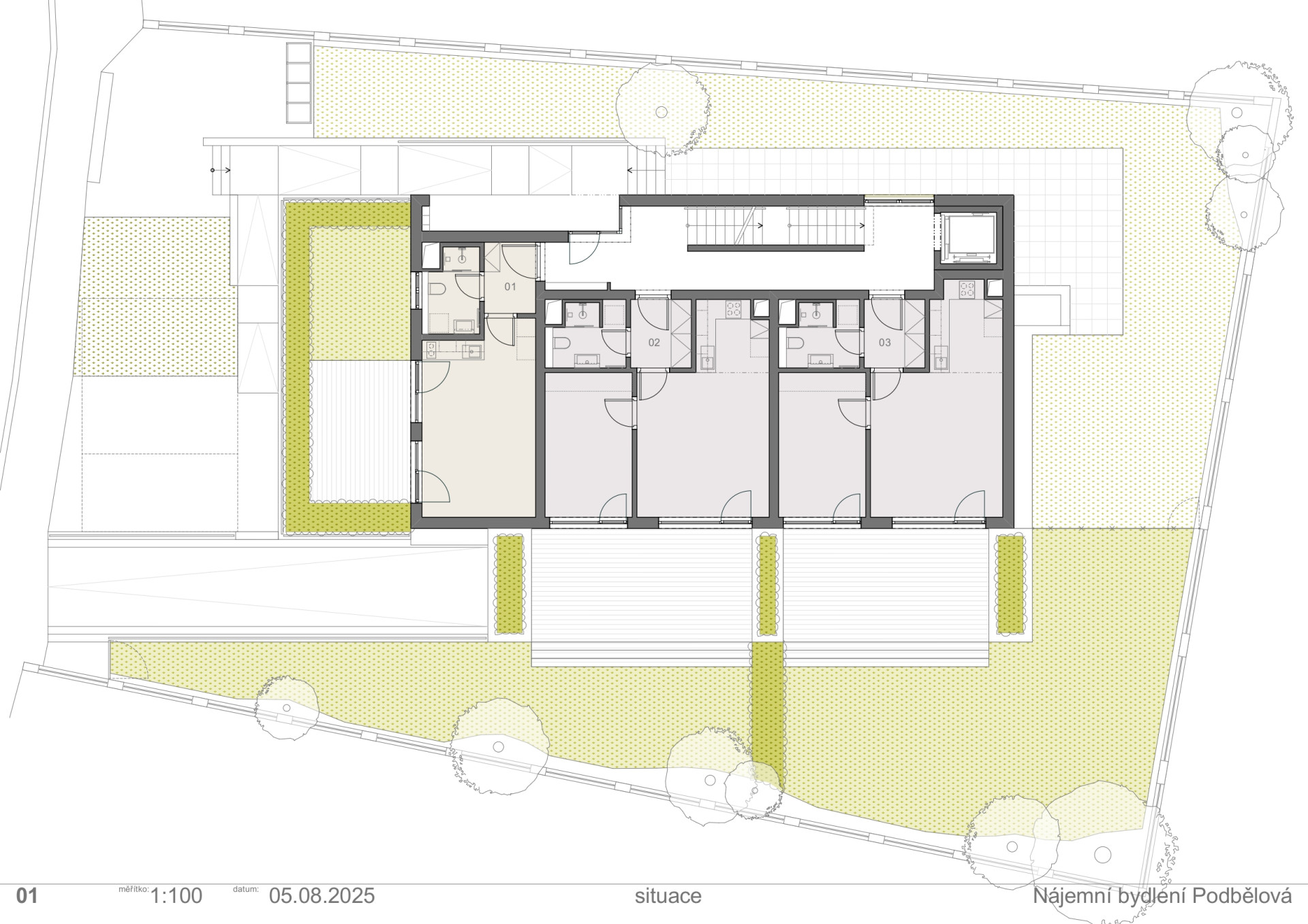 Na pozemku v Podbělové ulici mohl stát vyšší dům, než je v okolí obvyklé. Investor se ale rozhodl jinak – nechtěl, aby novostavba nad stávající zástavbou vyčnívala. Vznikl proto třípodlažní dům s devíti nájemními byty.