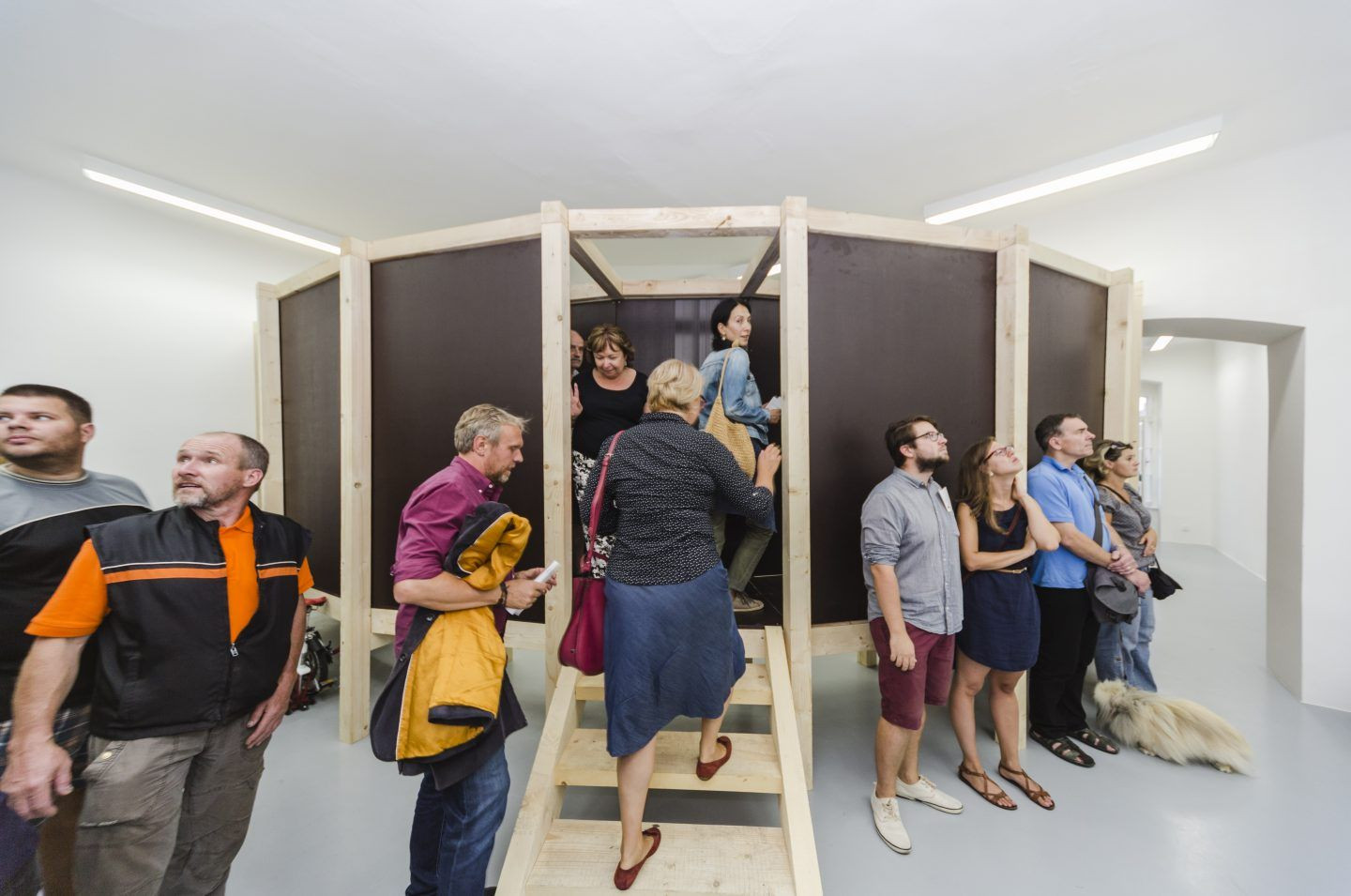 Kruhový prostor byl přímo propojen cestou se schody s prostorem prvního patra Domu umění, kde se objevil opět kruh, ale v jiných souvislostech. Návštěvník se v prostoru galerie mohl pohybovat pouze po vymezené kruhové cestě a do volných prostor galerie se vlastně nedostal. Záměrné odcizení kašny a zvýraznění vstupu do Domu umění oknem je celkovým smyslem projektu. Do zajímavé konfrontace se tak dostávají věci, které spolu zdánlivě nesouvisí. Tato instalace nestála pouze na základě vlastní výtvarně architektonické intervence, ale byla rovněž doplněna třemi debatními večery za účasti hostů z řad odborníků, umělců, architektů i politiků - o blok přednášek a diskusních pořadů pro veřejnost, vztahujících se k historii i současnosti náměstí a jeho využití, ale i ke vztahu současného umění a architektury. Instalaci vidělo přes 36 000 návštěvníků.