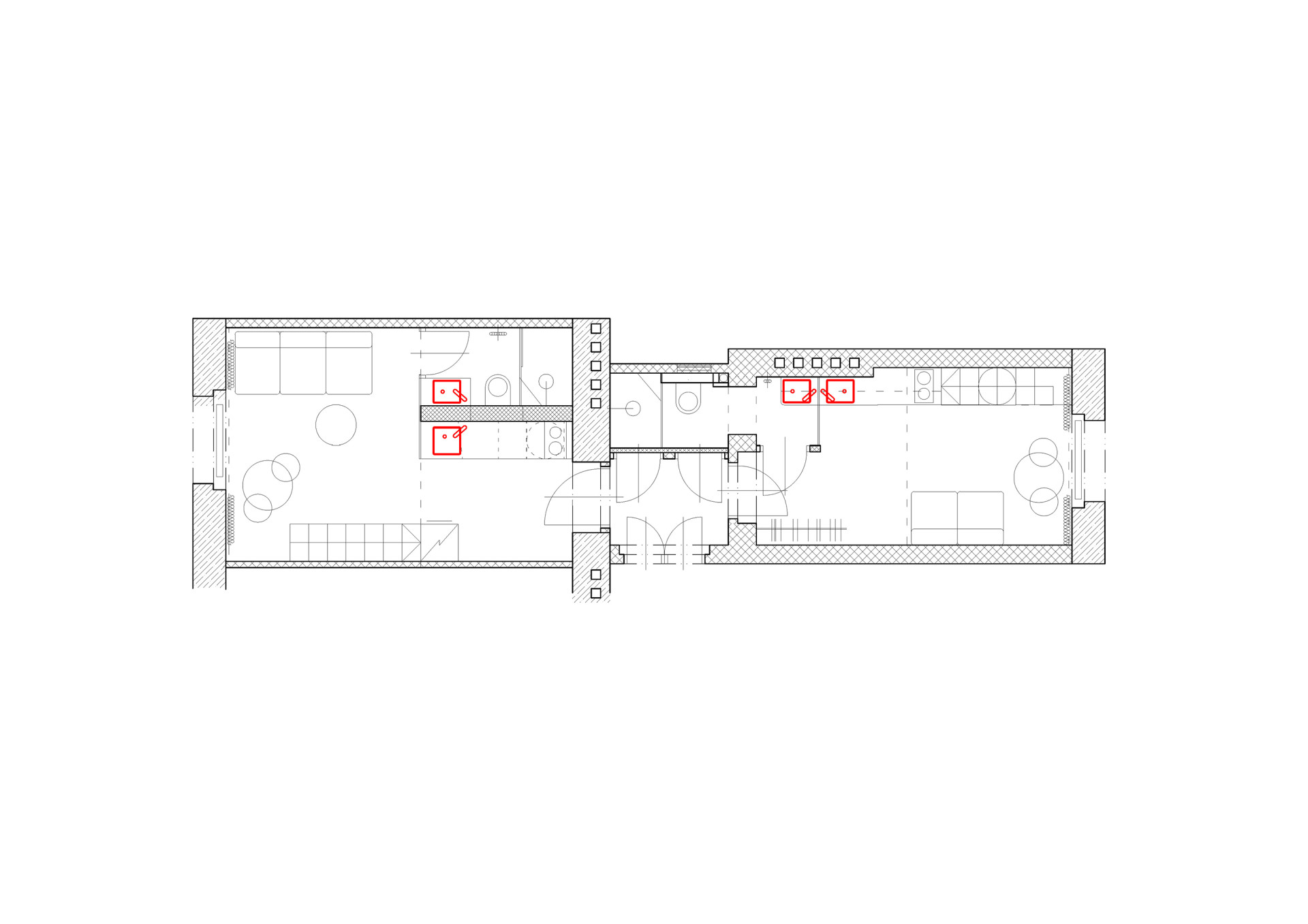 „V polovině dispozice zůstala zachována stará výmalba. Drobné praskliny dodávají stěnám opravdovost, dokreslují prostor jako umělecké dílo. Na malbách přibyly jen lineární značky od elektrikáře pro osazení vypínačů a poznámky dělníků,“ uzavírají autoři.
