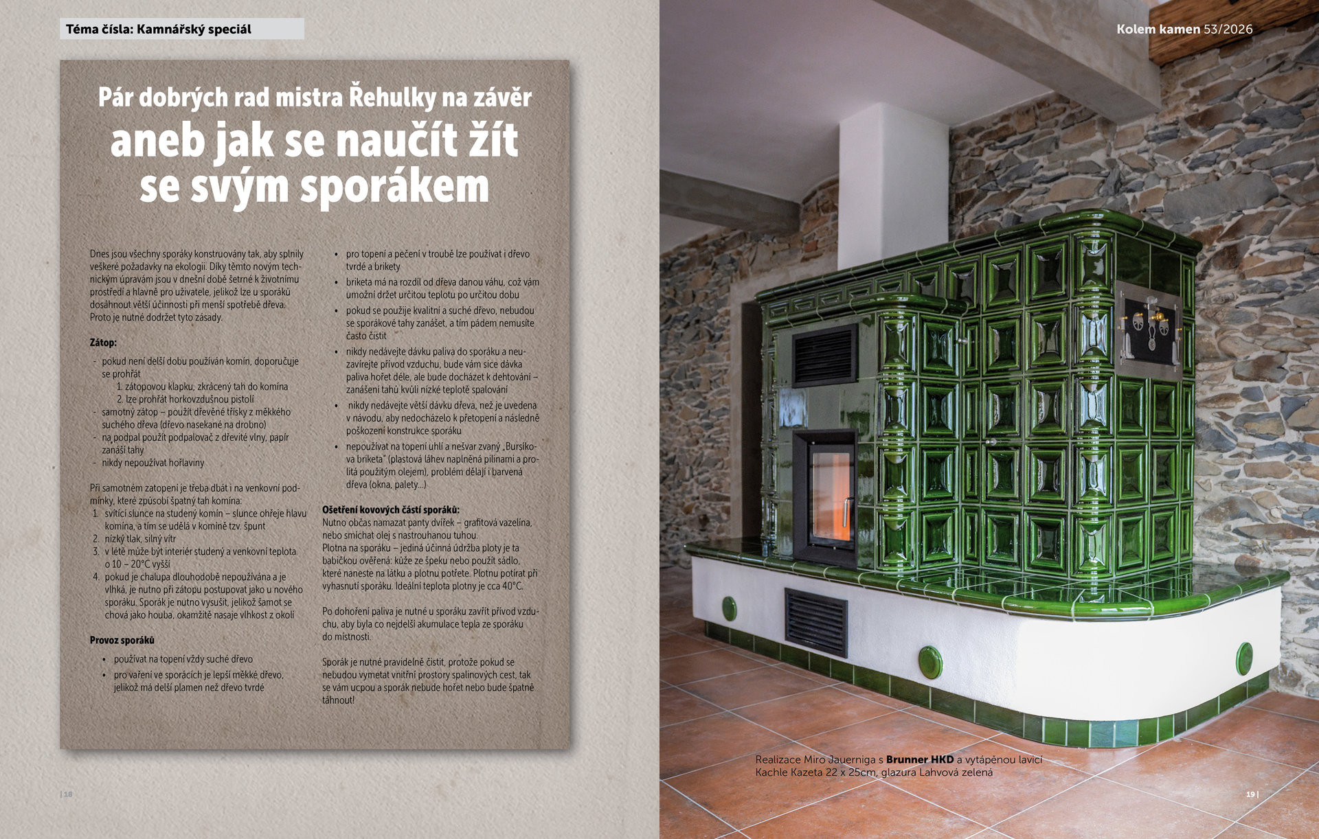 Mezi doznívající topnou sezonou a prvními jarními dny otevírá jarní vydání časopisu Kolem kamen téma sporáků v překvapivě širokém kontextu – nikoliv jako záchvěv nostalgie, ale jako plnohodnotnou součást dnešních domácností. Zdaleka ne jen jako dekorace do chalupy, ale jako promyšleného a funkčního středobodu domu, kde se vaří, peče, topí a často i žije. Nové číslo ukazuje, že sporák má dnes mnoho podob – od jednoduchých stolových řešení až po kachlové stavby s troubou, akumulací nebo vyhřívaným ležením – a že dobře navržený sporák dokáže nabídnout víc než jen teplo.
