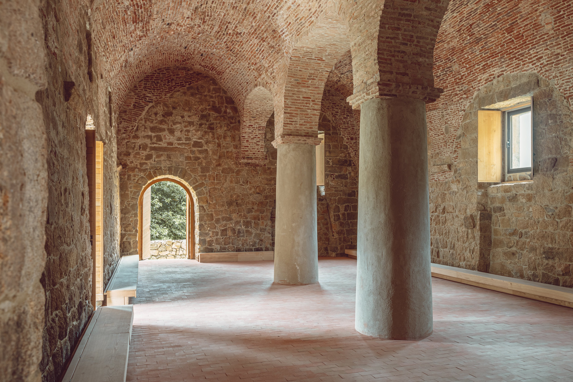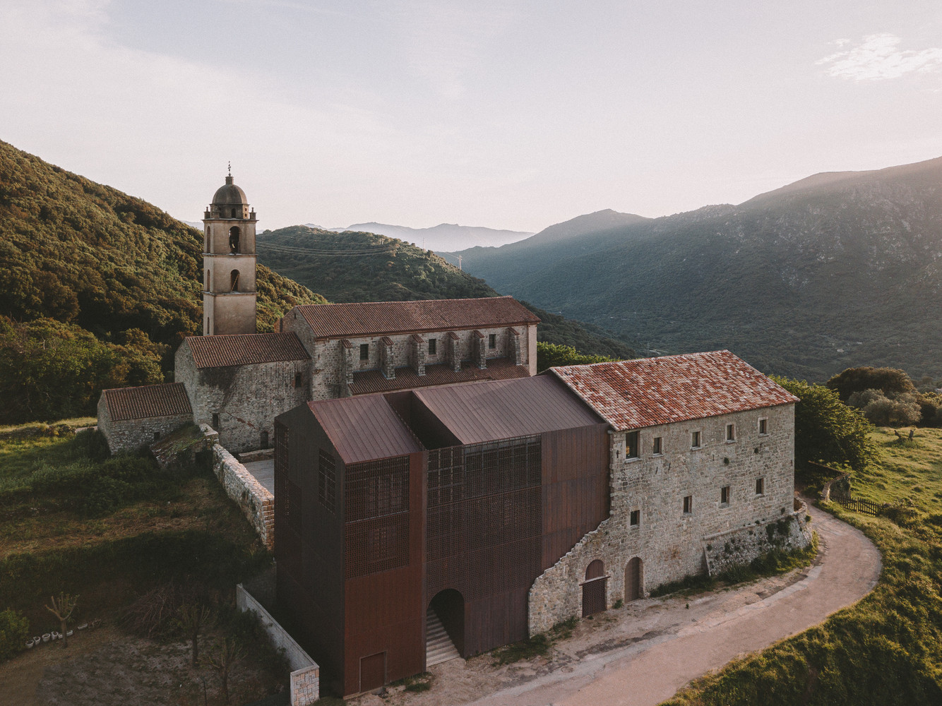 Současné podobě kláštera ovšem předcházela velká rekonstrukce. V novodobé historii byl dlouho opuštěný, postupně zarostl a jeho zdivo se začalo rozpadat. Projekt na záchranu areálu vypracovalo studio korsické architektky Amelie Tavelly v roce 2021. Staré navrhoval očistit a zakonzervovat, přibýt ale měla taky vrstva nová – přístavba z mědi, která se teď po dokončení pod slunečními paprsky načervenale leskne.