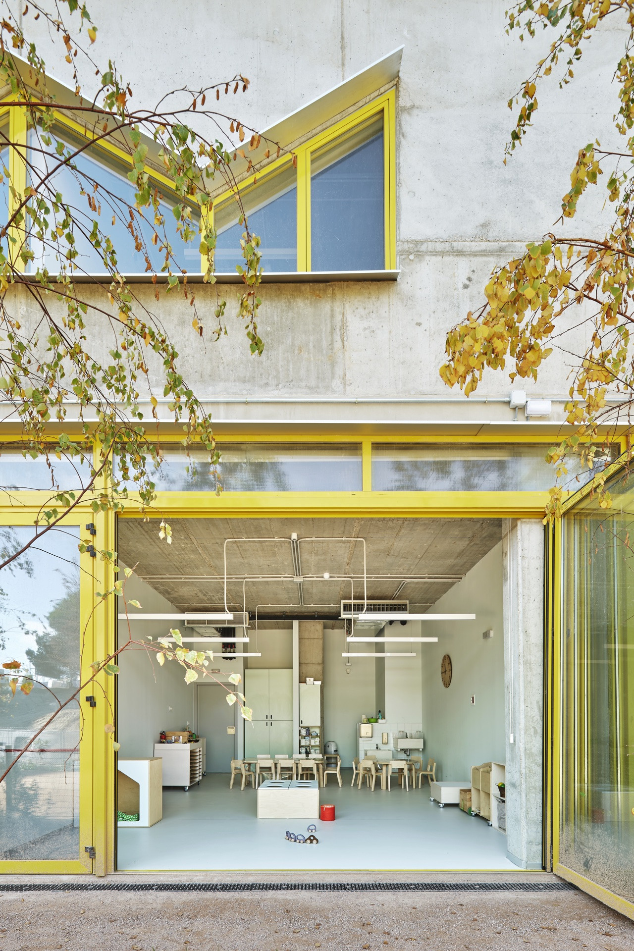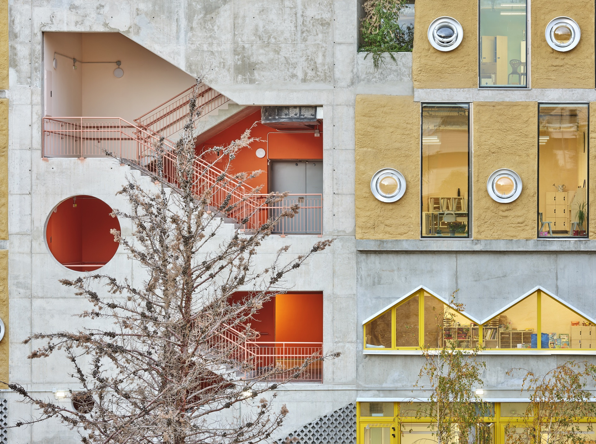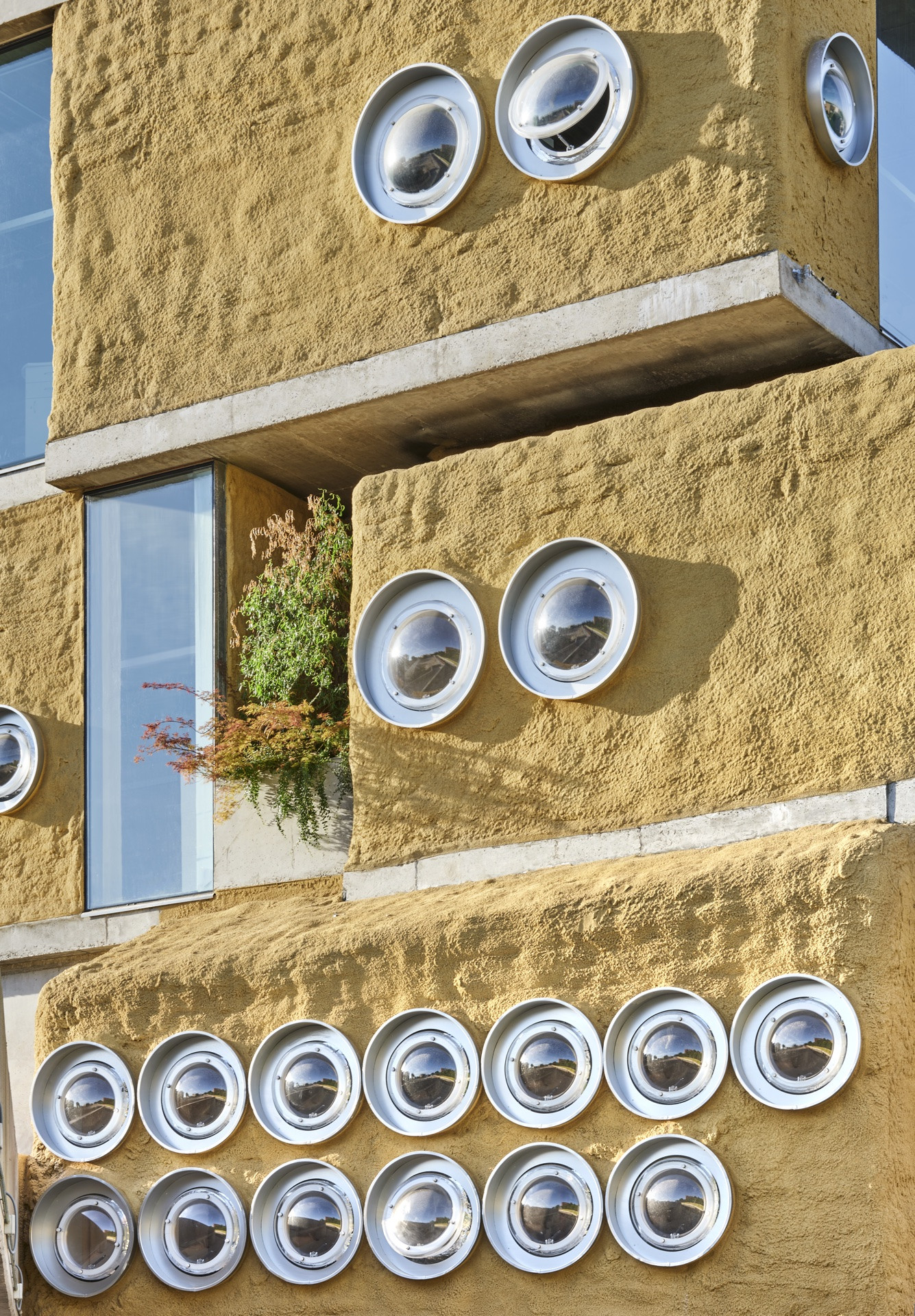 Je to vidět například na přemýšlení o materiálech. Architekt Andrés Jaquey to v rozhovoru pro magazín Domus popsal: „Našli jsme například velkou zásobu plastových kulatých oken, které byly vyrobeny někdy kolem roku 2000. Byly určeny pro obytné vozy. My jsme je využili jako hlavní prvek fasády.“ Děti je prý milují a mají pocit, že jsou v ponorce.