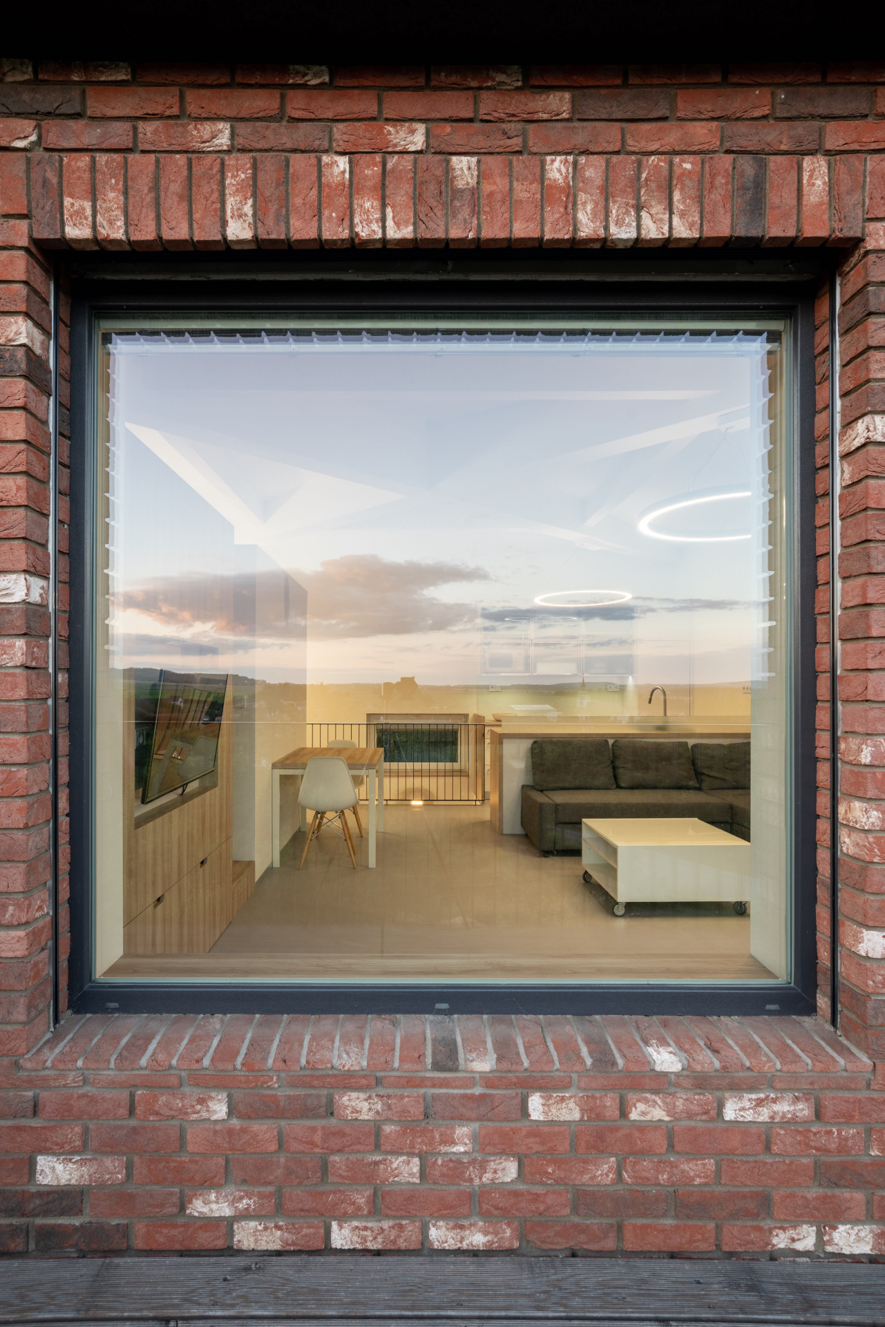 Pro architekty bylo od samého začátku důležité, aby si utilitární stavba uchovala svou původní podobu v co největším rozsahu. Proto po jejím zateplení nechali fasády stavby obložit po vzoru originálního řešení raženými cihlovými pásky Klinker Centrum s charakteristickou rustikální strukturou, které působí jako ručně vyráběné. Hmotu trafostanice výrazně nenarušily ani vnitřní stavební úpravy. „Nová okna jsou umístěna tak, aby si stavba ponechala svůj ráz i měřítko. Při pohledu zvenku tak není patrné členění na tři podlaží,“ vysvětlují autoři návrhu.
