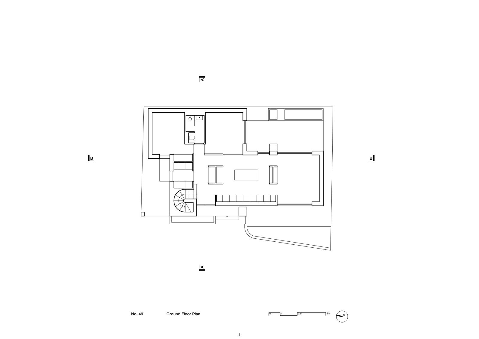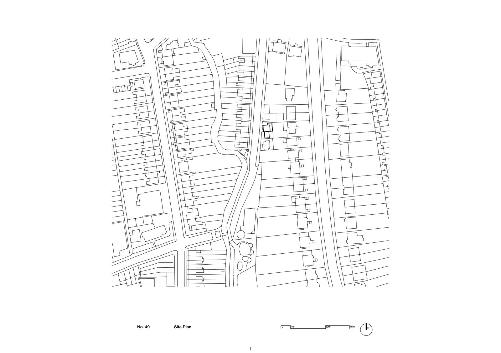 Vzhled linie této strany ulice je definován hlavně otevřenými zahradami a občasnými garážemi nebo jinými drobnými stavbami. Dům č. 49 svým jasně definovaným stylem do této části města přesně urbanisticky zapadá a přináší nový vítr.