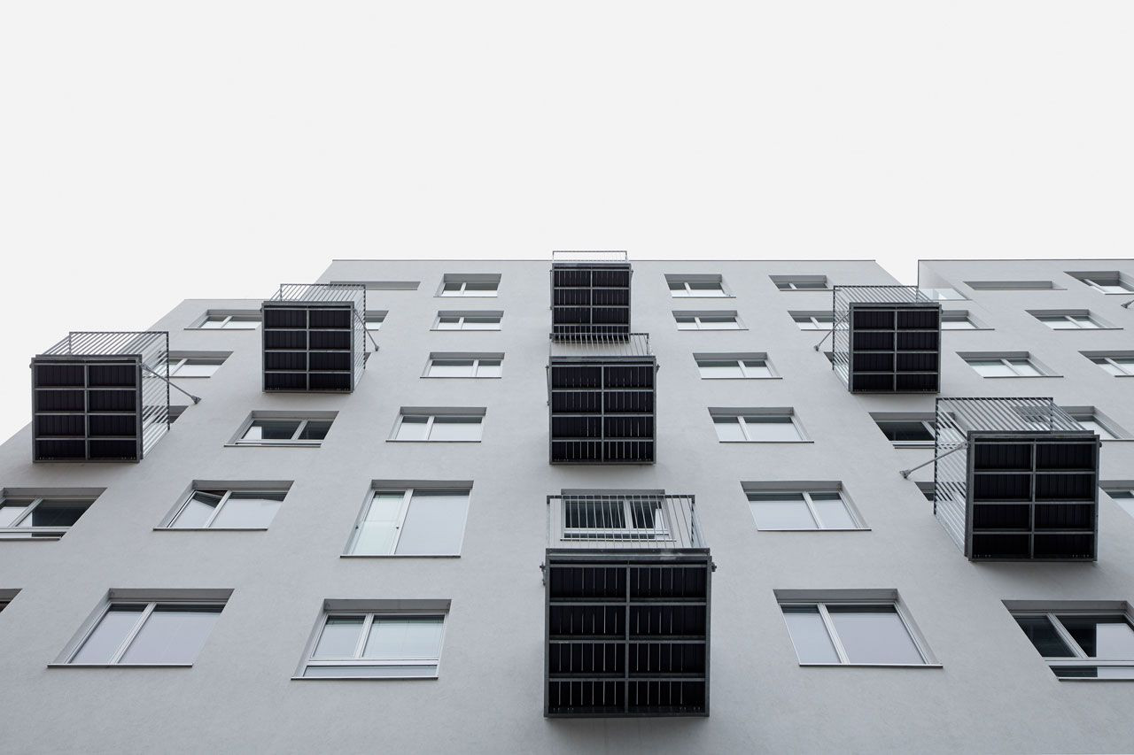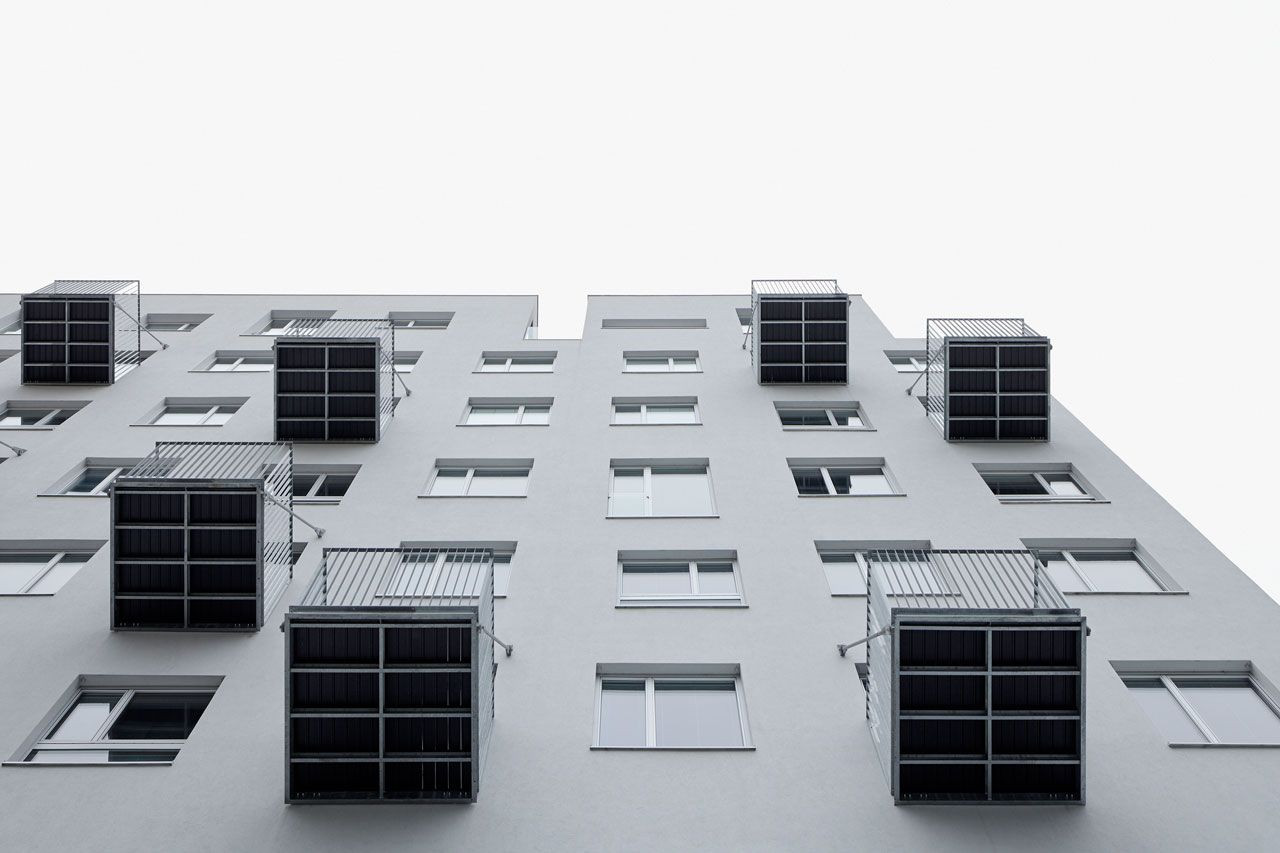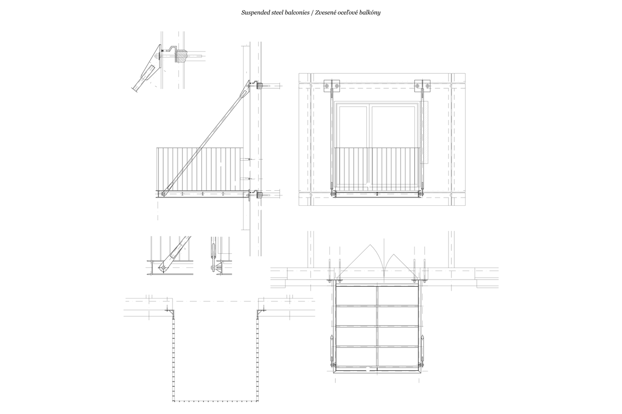 gutgut, Panelák v Rimavskej Sobote, zavěšené ocelové balkony, detail - foto