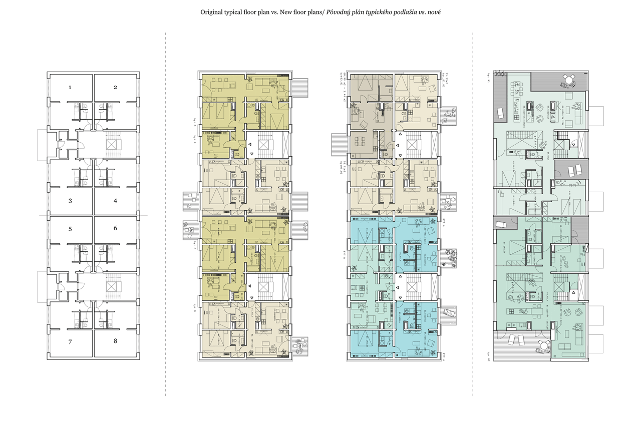 gutgut, Panelák v Rimavskej Sobote, půdorysy, původní stav - foto