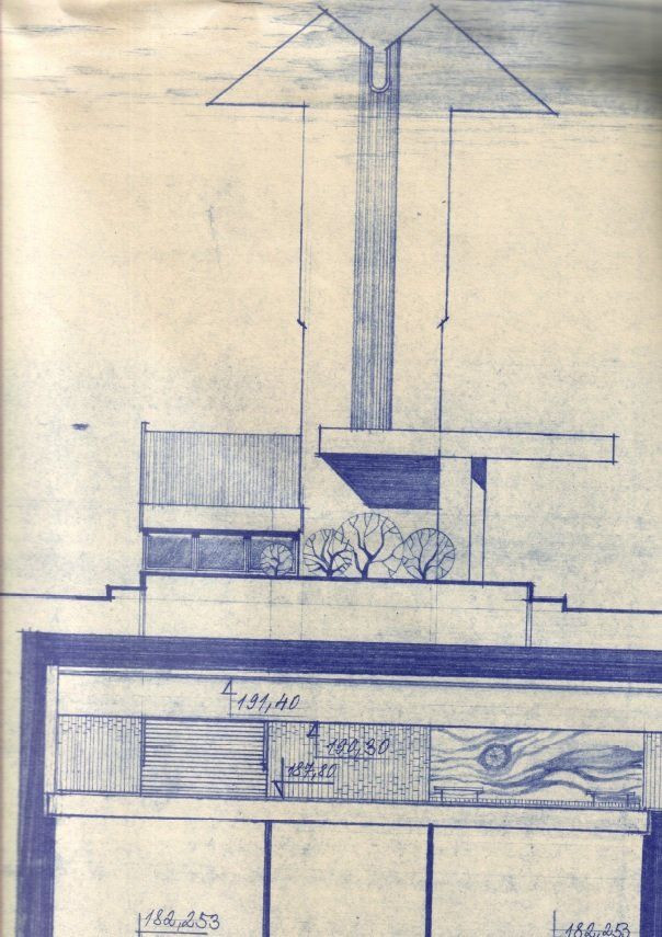 Větračka Smíchovského nádraží od architekta Davida se dme nad přilehlým autobusovým terminálem. Vzduch zde proudí také z horní části výdechu, pod naznačenými, k zády sobě otočenými stříškami. Ty jsou vizuálně odděleny výžlabkem pokrytým keramickými tvarovkami, které stékají od vrcholku až k uliční úrovni. Při navrhování výdechu architekt David uplatnil podle osobního svědectví pracovníků Dopravního podniku hl. m. Prahy malý trik vůči pražským hygienikům. Jimi požadovanou výšku od vzduch nasávajícího a výdechového prostoru v horní části stavby k uliční úrovni dosáhl tím, že míru vedl od horní vnější hrany výdechu diagonálně k levé části základny.