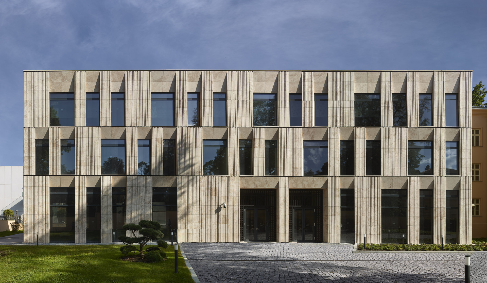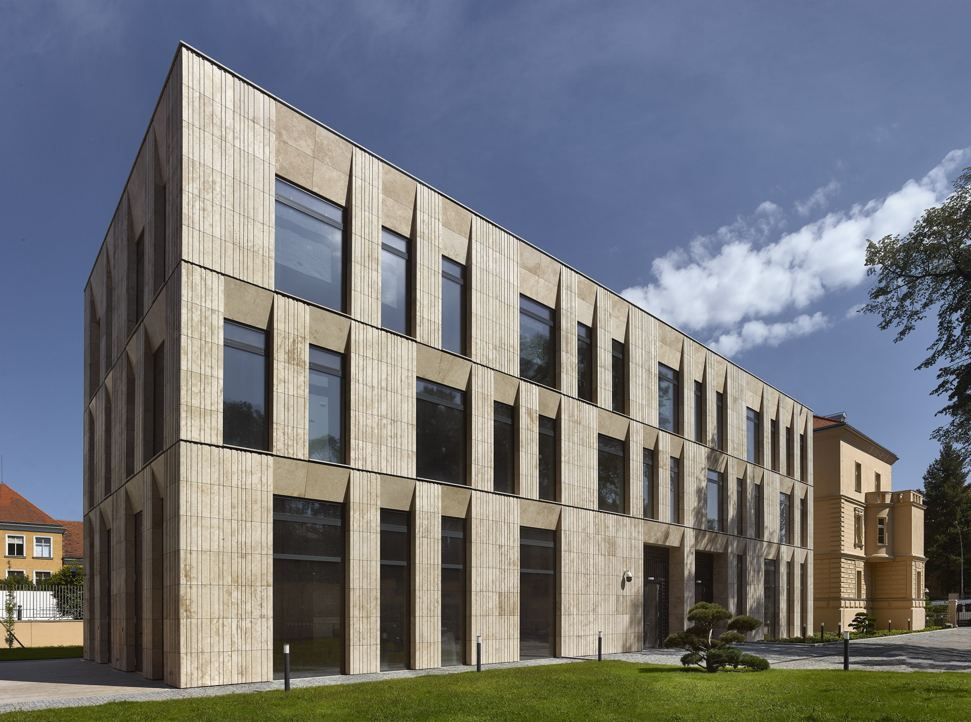 Nové sídlo ambasády Korejské republiky spojuje staré s novým. Architekti z libereckého studia SIAL zrekonstruovali původní novorenesanční vilu orientovanou do ulice a v zahradní části pozemku k ní připojili moderní křídlo.