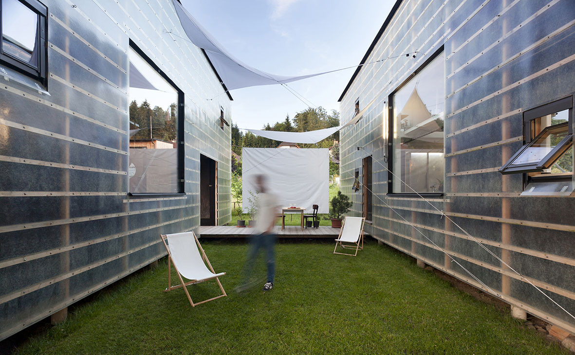 Filozofie, která spočívá v naprostém zjednodušení definice bydlení i výstavby, je zasvěcenému publiku známa. Autoři se rozhodli prozkoumat potenciál panelového rodinného domu ve chvíli, kdy je oslovila firma vyrábějící sendvičové panely SIP (Structural Insulated Panel). Při běžné stavební produkci domů s nepraktickými půdorysy i tvaroslovím se musejí panely ořezávat, čímž vzniká velké množství odpadu a realizace se prodražuje. Autorská dvojice firmě nabídla, že vytvoří několik prototypů, které budou pracovat přímo s výrobními rozměry 125 × 300 cm nebo 125 × 500 cm, z nichž lze bez jakýchkoli přířezů vytvořit celou sérii typových objektů.