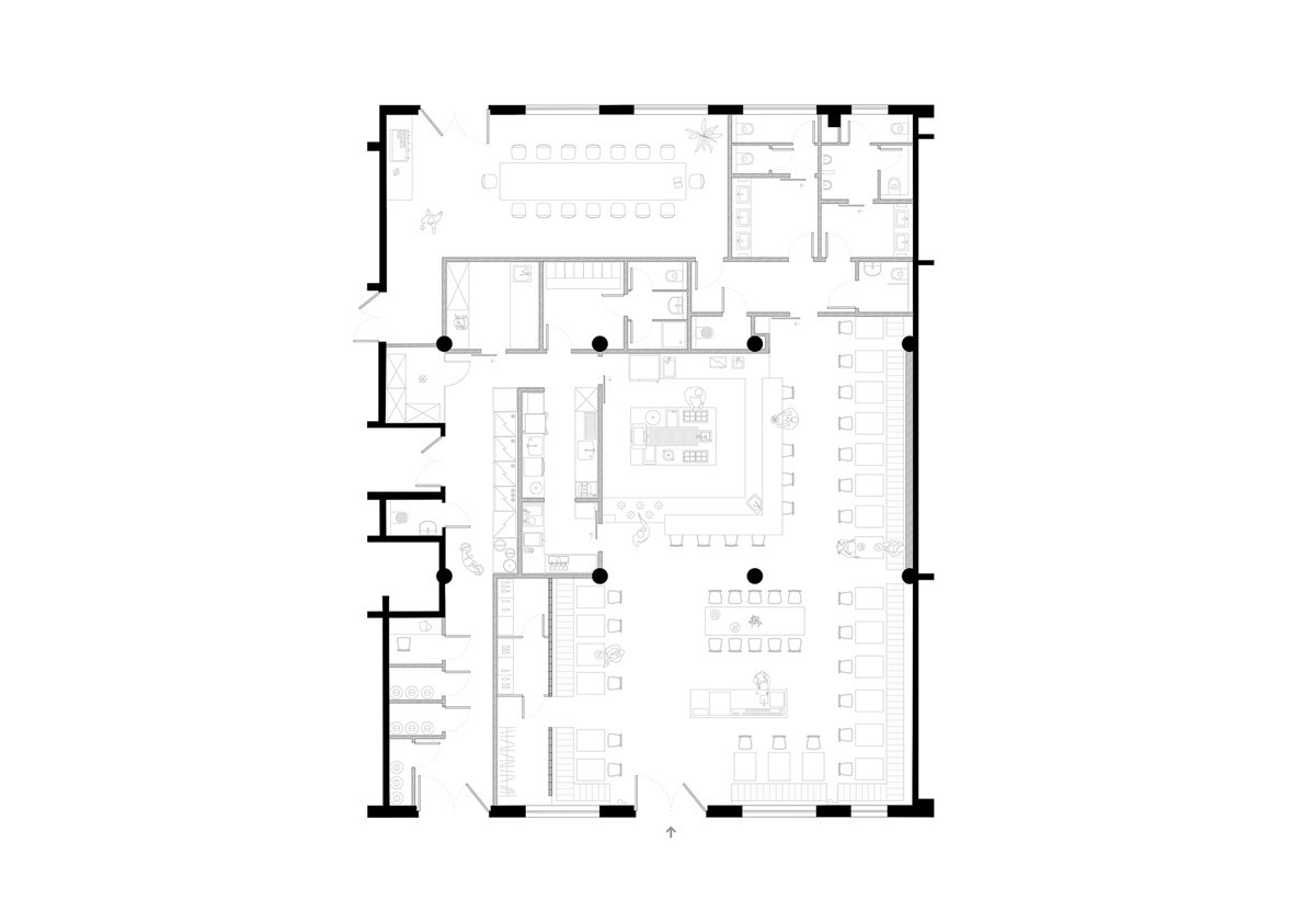 Surovost odhalených materiálů, důraz na detail a celková transparentnost prostoru se staly hlavními chrakteristikami nového gastronomického podniku The Eatery v pražských Holešovicích. Návrh bistra postavili architekti David Neuhäsl a Matěj Hunal na konceptu otevřenosti gastronomické scény. Hlavním jevištěm se zde stala otevřená kuchyň ve středu půdorysu, kterou pak obklopuje hlediště stolů a lavic. Podobně jako u svého projektu rekonstrukce panelákového bytu, který Marcela Steinbachová zařadila do letošní ročenky české architektury, nechali architekti také zde odhalit část betonového skeletu budovy a pomocí jednoduchého vybavení a neutrálních barev zvýraznili centrální prostor otevřené kuchyně. Pozornosti návštěvníka ale neujde ani stěna z běžných plotových tvarovek nebo "nedokončené" sádrokartonové příčky s barevnými kresbami svědčící o důveře mezi architekty a investorem.