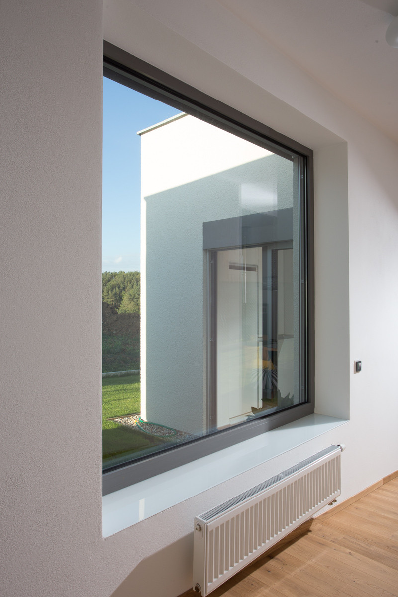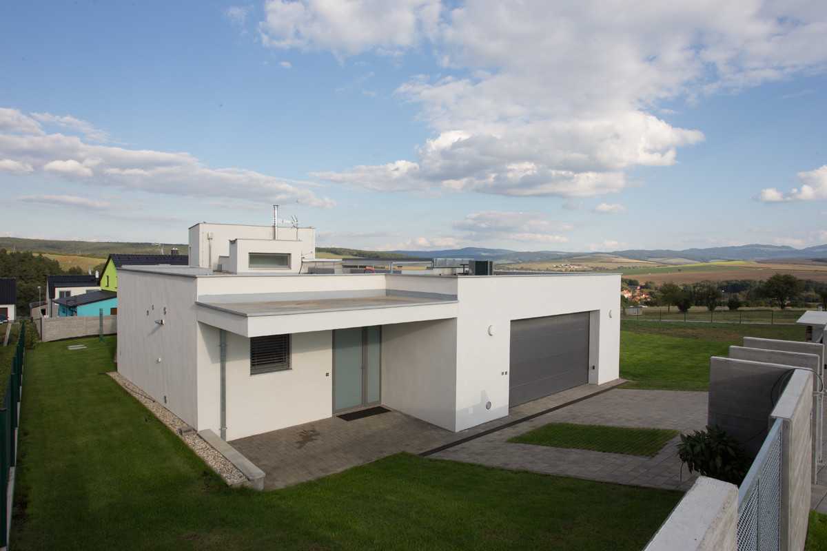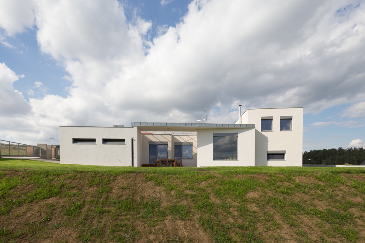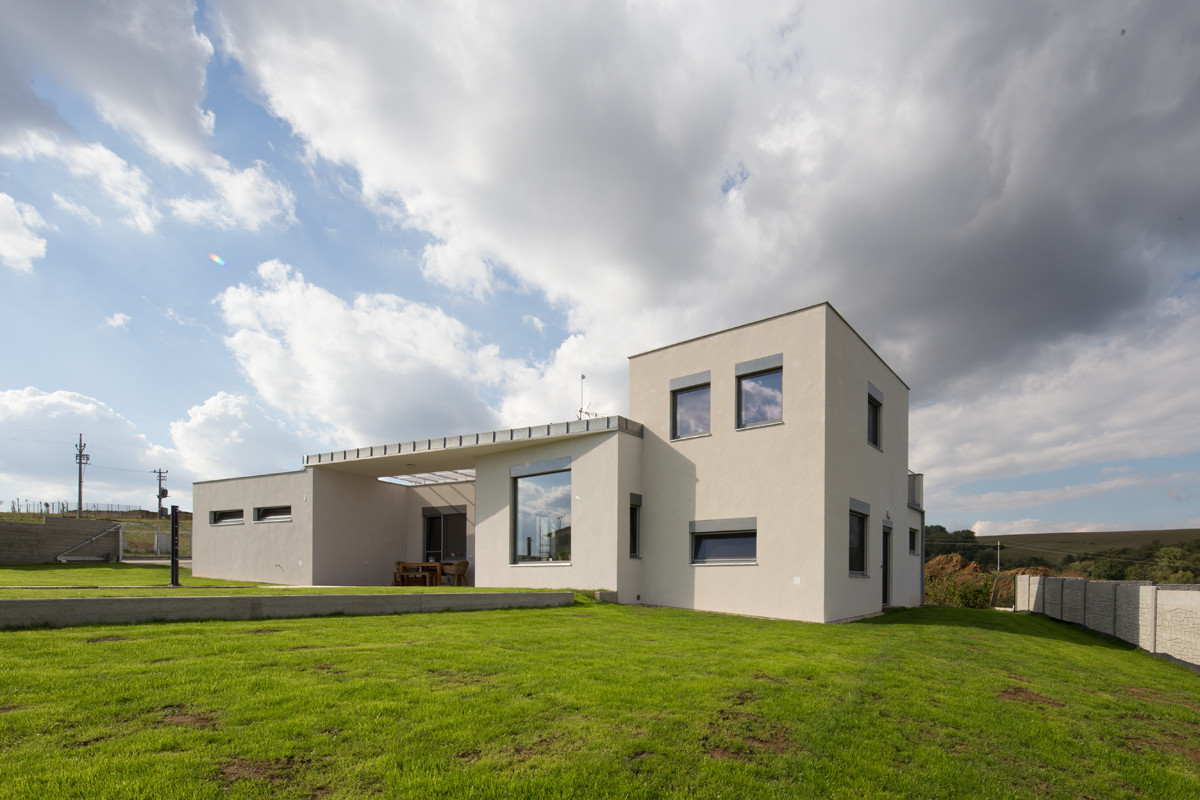 Rodinný dům ve vesnici Újezdec u Luhačovic na Moravě od brněnského studia NEW WORK vedeného Svatoplukem Sládečkem funguje podobně jako dětská stavebnice. Jednotlivé funkce domu jsou totiž rozděleny do samostatných objemů ve tvaru kvadrů. Vhodné rozvržení těchto jednotlivých částí hmoty stavby pak umožnilo vytvořit několik venkovních a polovenkovních prostorů pro terasy i patio. Celý dům je řešen jednoduše v bílé barvě, doplněné o šedé lemování oken či výrazné oplechování atiky.