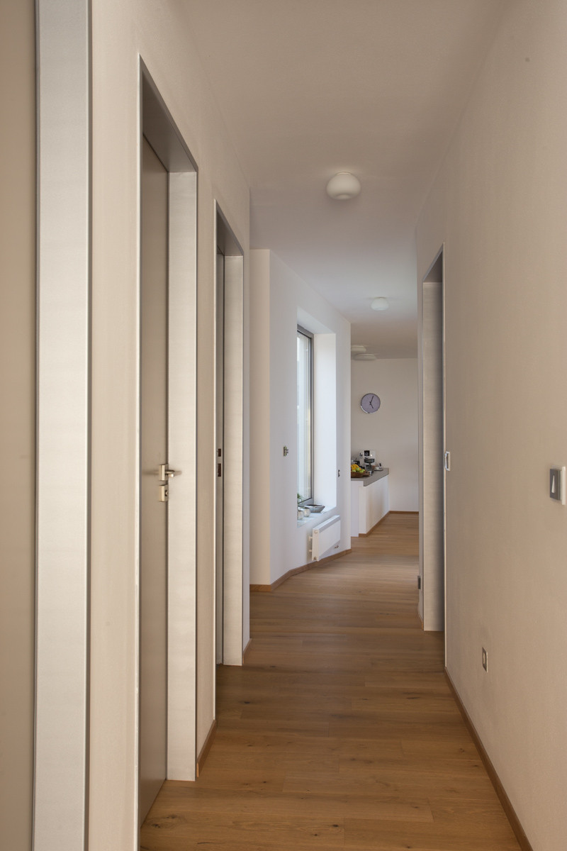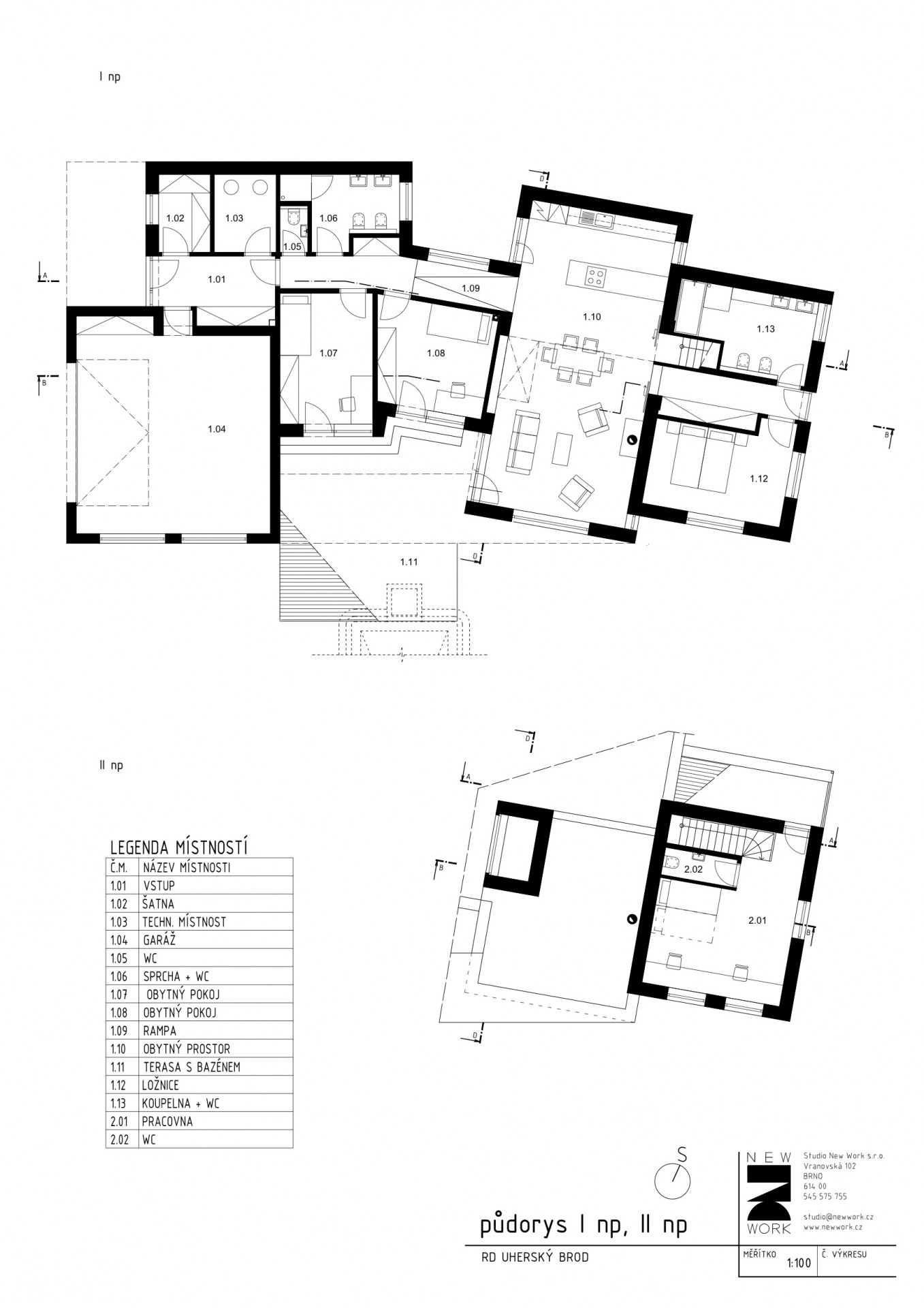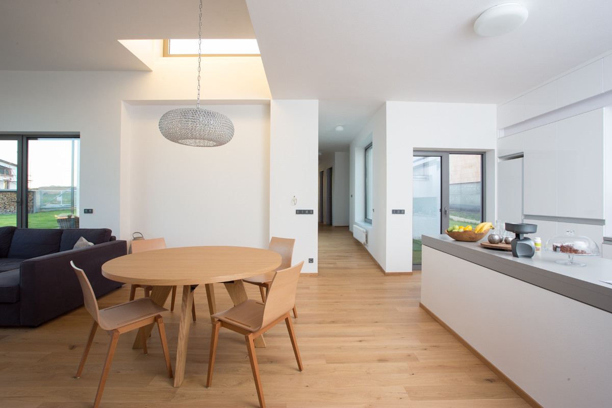 Rodinný dům ve vesnici Újezdec u Luhačovic na Moravě od brněnského studia NEW WORK vedeného Svatoplukem Sládečkem funguje podobně jako dětská stavebnice. Jednotlivé funkce domu jsou totiž rozděleny do samostatných objemů ve tvaru kvadrů. Vhodné rozvržení těchto jednotlivých částí hmoty stavby pak umožnilo vytvořit několik venkovních a polovenkovních prostorů pro terasy i patio. Celý dům je řešen jednoduše v bílé barvě, doplněné o šedé lemování oken či výrazné oplechování atiky.