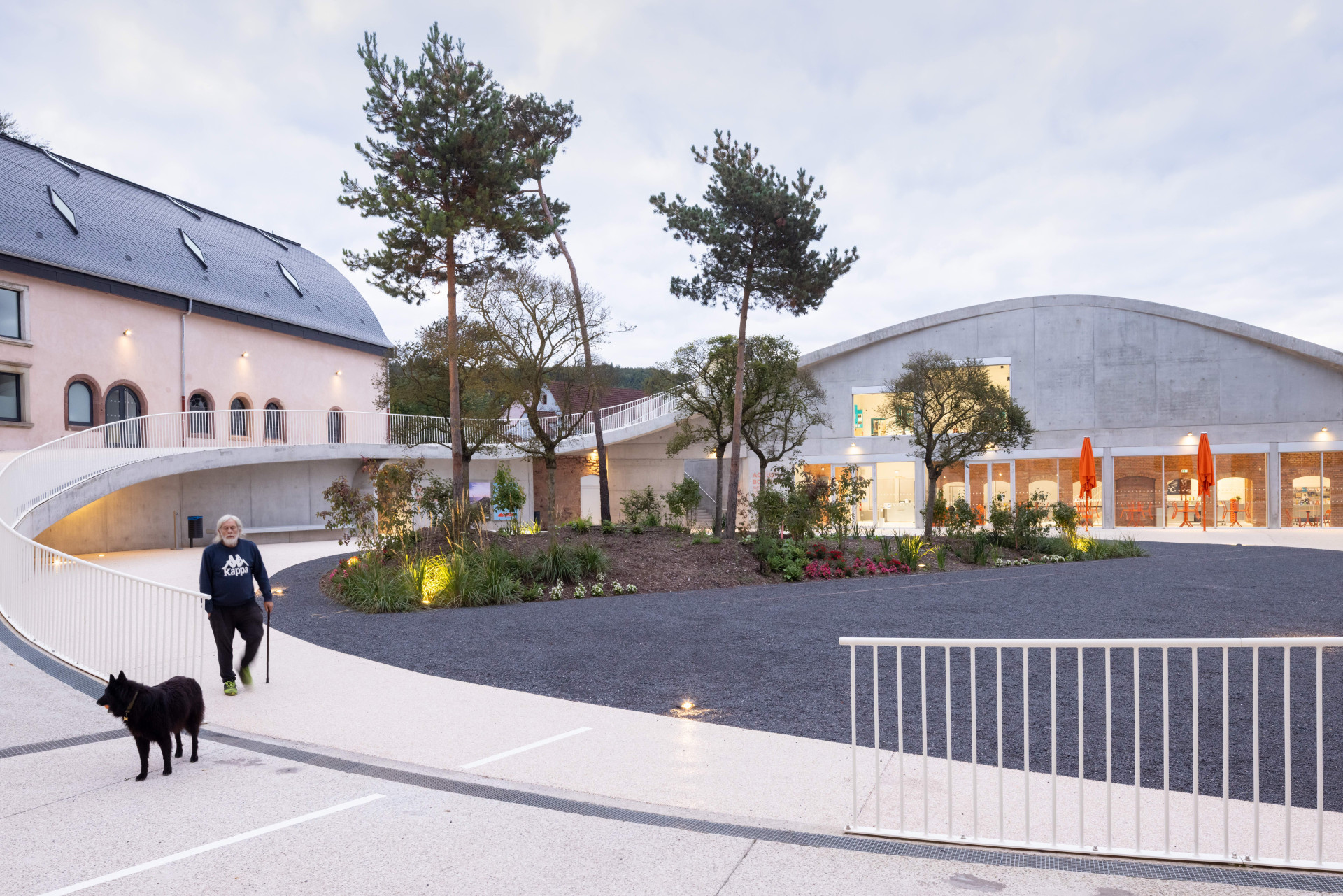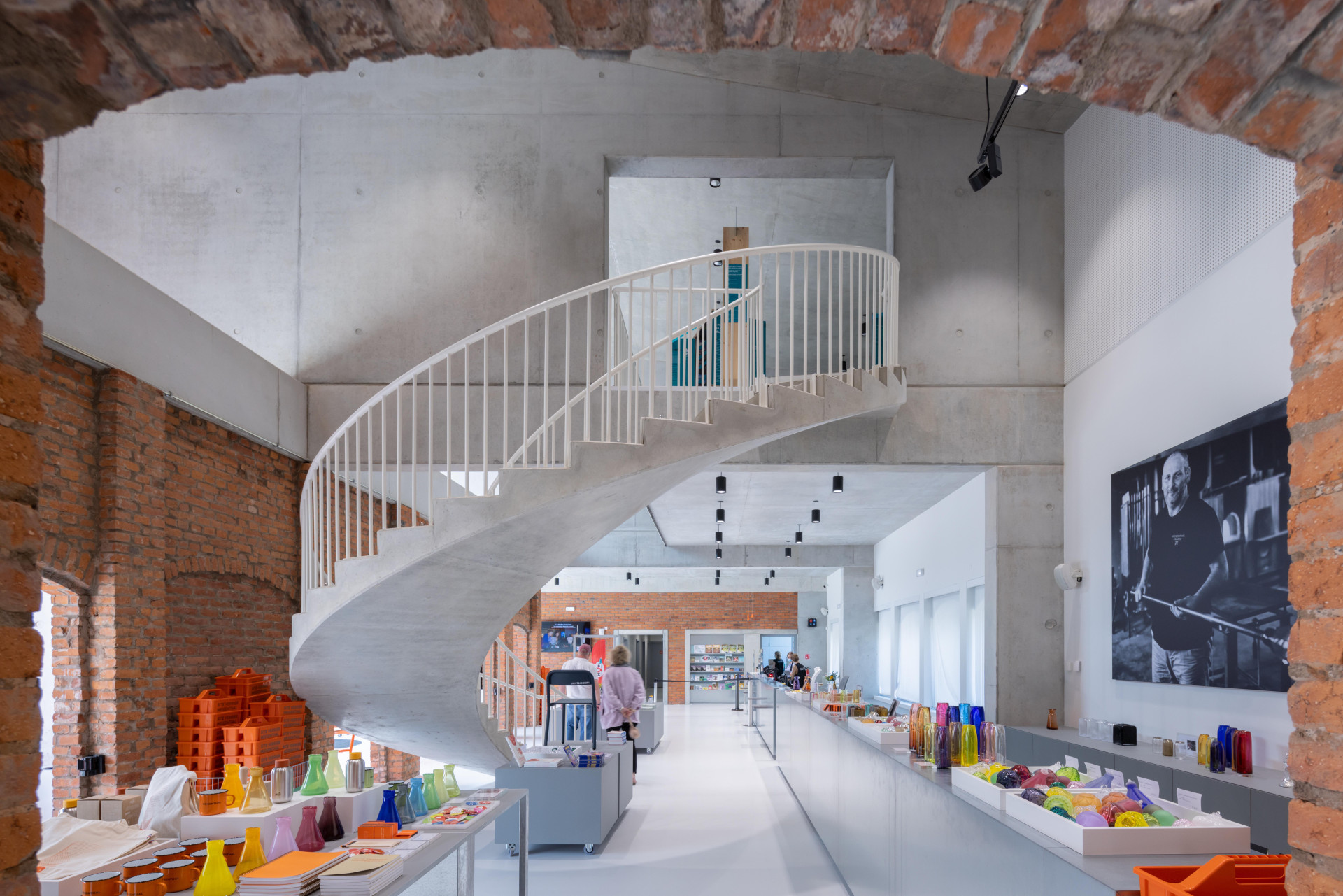 Dílčích stavebních zásahů se dočkala i původní sklářská továrna – má nový vstup, dosud nevyužívaný suterén se proměnil v multifunkční prostor pro konání divadla nebo koncertů. A podobné využití může v letní sezóně nabídnout také prostor náměstí. Projekt ukazuje možnosti využívání industriálních staveb pro novou funkci a současně propojování historických a moderních vrstev do jednoho harmonického celku.