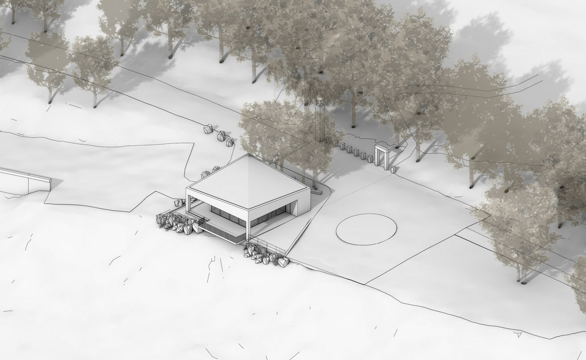 Dům je postaven na mikro-pilotách jako dřevostavba s rámovou konstrukcí a zastřešením z lepených vazníků tvořících šikmou střechu s diagonálním hřebenem. Šindelová fasáda odkazuje na místní tradiční stavební techniku, zelená střecha s místní horskou květenou navazuje na okolní louky. Pískovcové dlažby a zdi využívají místní kámen.