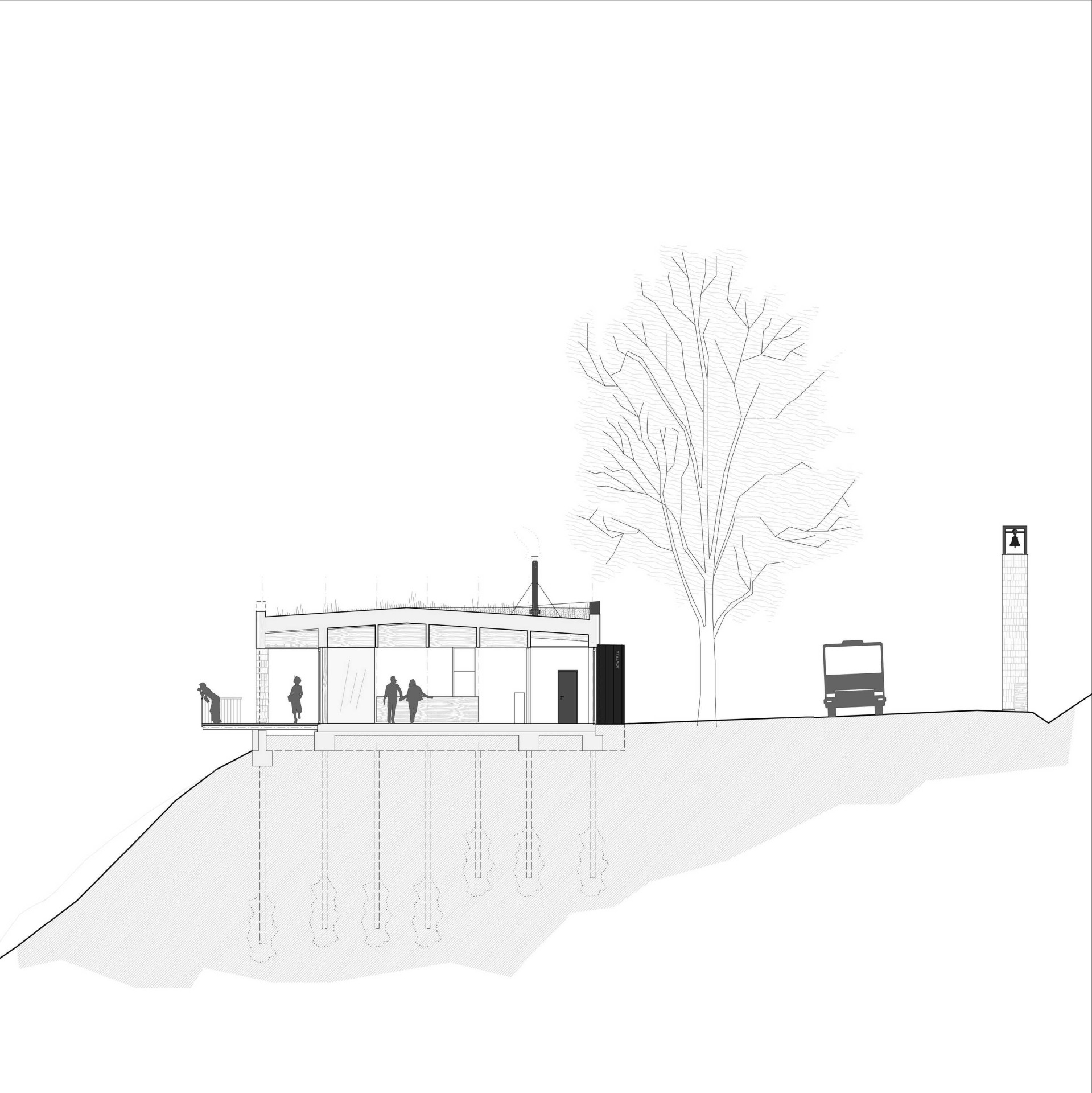 Obec Prostřední Bečva se tím snaží zatraktivnit autobusovou dopravu a omezit nápor aut do známého sedla. Je to také součást její dlouhodobější strategie: ve spolupráci se studiem Henkai již zkultivovali náves a vyvinuli také přístřešky pro zastávky přímo ve vesnici. Na to vše zdejší budova navazuje tvarováním, materiály a celkovým výrazem.