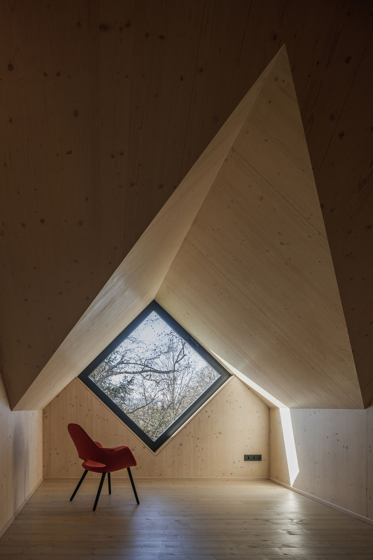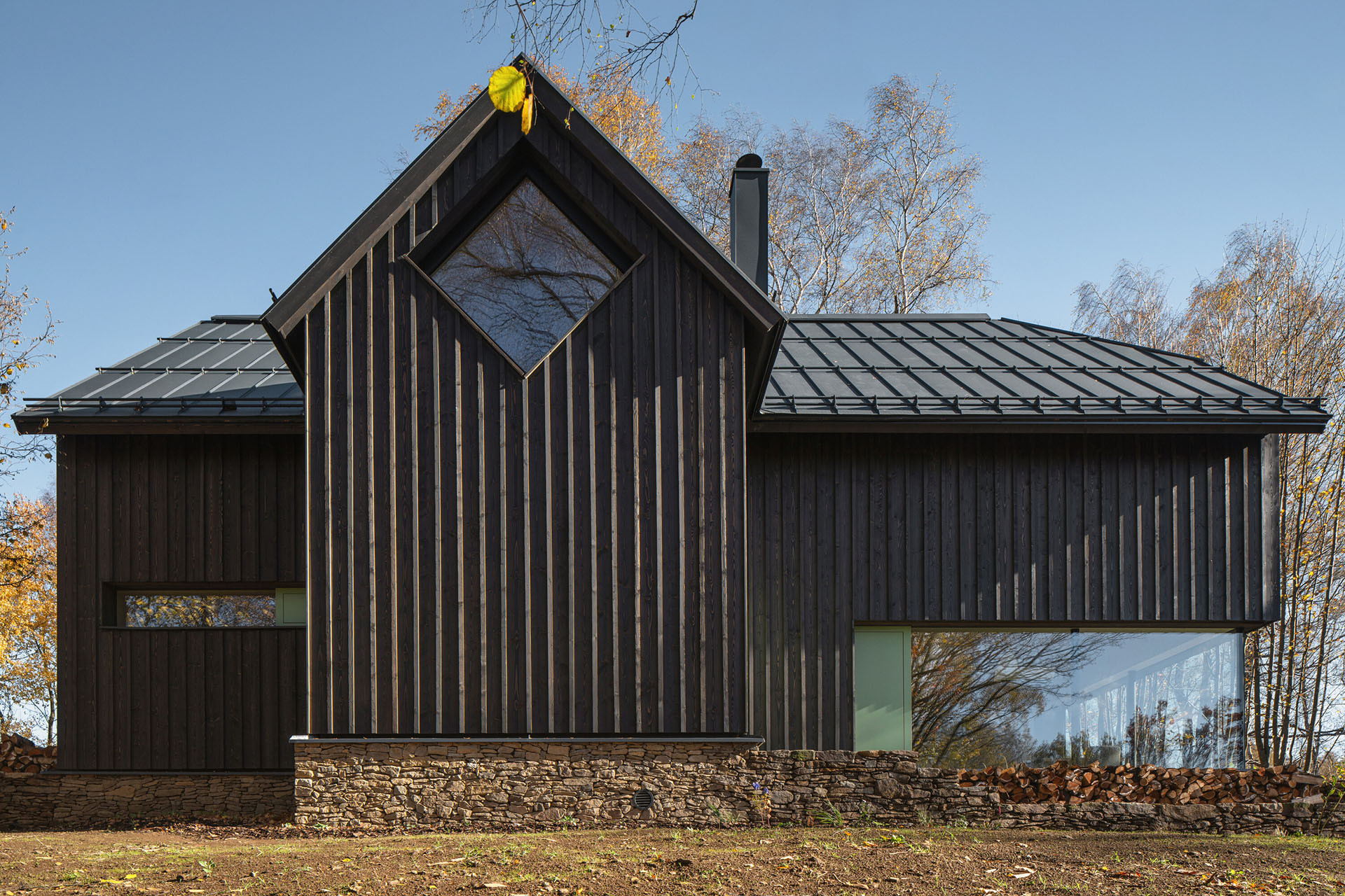 Architektka Markéta Cajthamlová se svým ateliérem navrhuje „obyčejné“ domy s prvky, které je ozvláštňují. Naposledy takovou charakteristiku splňovala chata, kterou zrealizovali v Jizerských horách. Nyní na ni navazuje tato chalupa na Šumavě – obyčejná je svou siluetou, kterou se podobá řadě dalších staveb v okolí, ozvláštněná pak okny v moderních formátech. Jsou pásová, úzká, velkoformátová, jedno dokonce postavené nakoso.