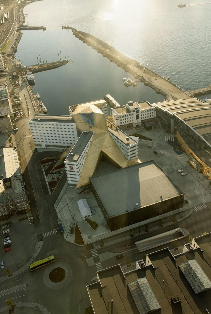 Hotel Clarion ve městě Trondheim je největší kongresový hotel v Norsku a je také jedním z největších ve Skandinávii. Jeho architekti, Space Group, přijali strategii orientačně odlišených křídel s deskovým vzhledem pro soukromé pokoje, umožňující návštěvníkům dokonalý výhled na moře, krajinu a město. Toto torzní pootočení otevírá centrální atrium a vytváří tak absolutně trojrozměrný prostor s komplexním tvarem střechy - kaskádovitě dolů dekonstruovanou zlatou hvězdou. Budova nabízí dramatický pohled z jakéhokoliv úhlu, ale zvlášť z výšky, odkud většina návštěvníků pohlédne poprvé, když přilétá.