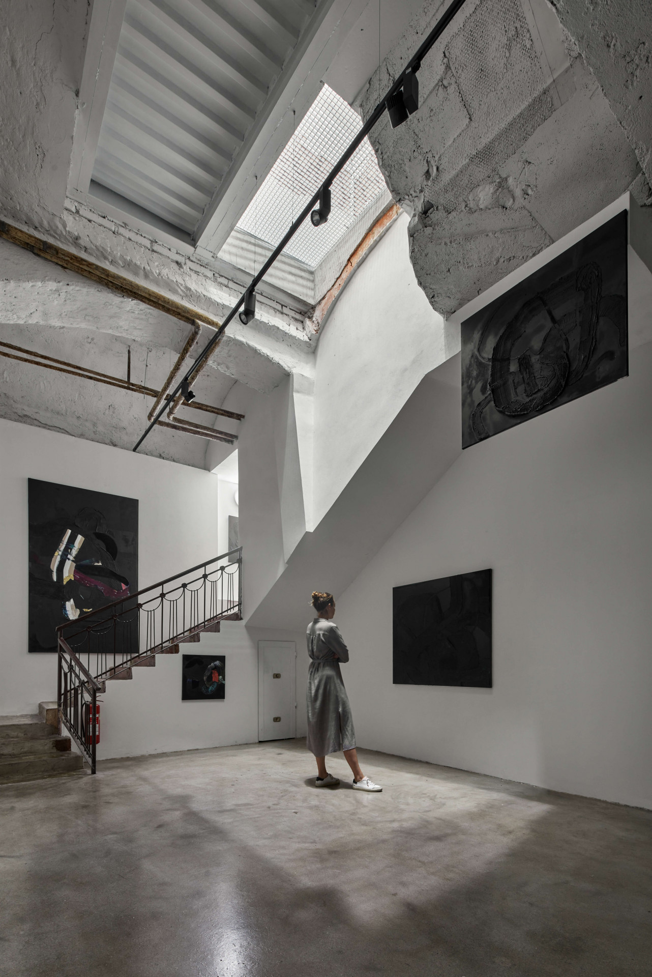 V prostorách dnešní galerie mnoho původního zůstalo, a to další bylo odhaleno. Spartánská rekonstrukce šla skutečně na dřeň historického domu. Do jeho konstrukcí architektky zasáhly jen v jednom místě – v suterénu vytvořily nový otvor, aby tudy prošly i velké obrazy. Když se zrovna nic nepřenáší, proudí zde přirozené denní světlo.