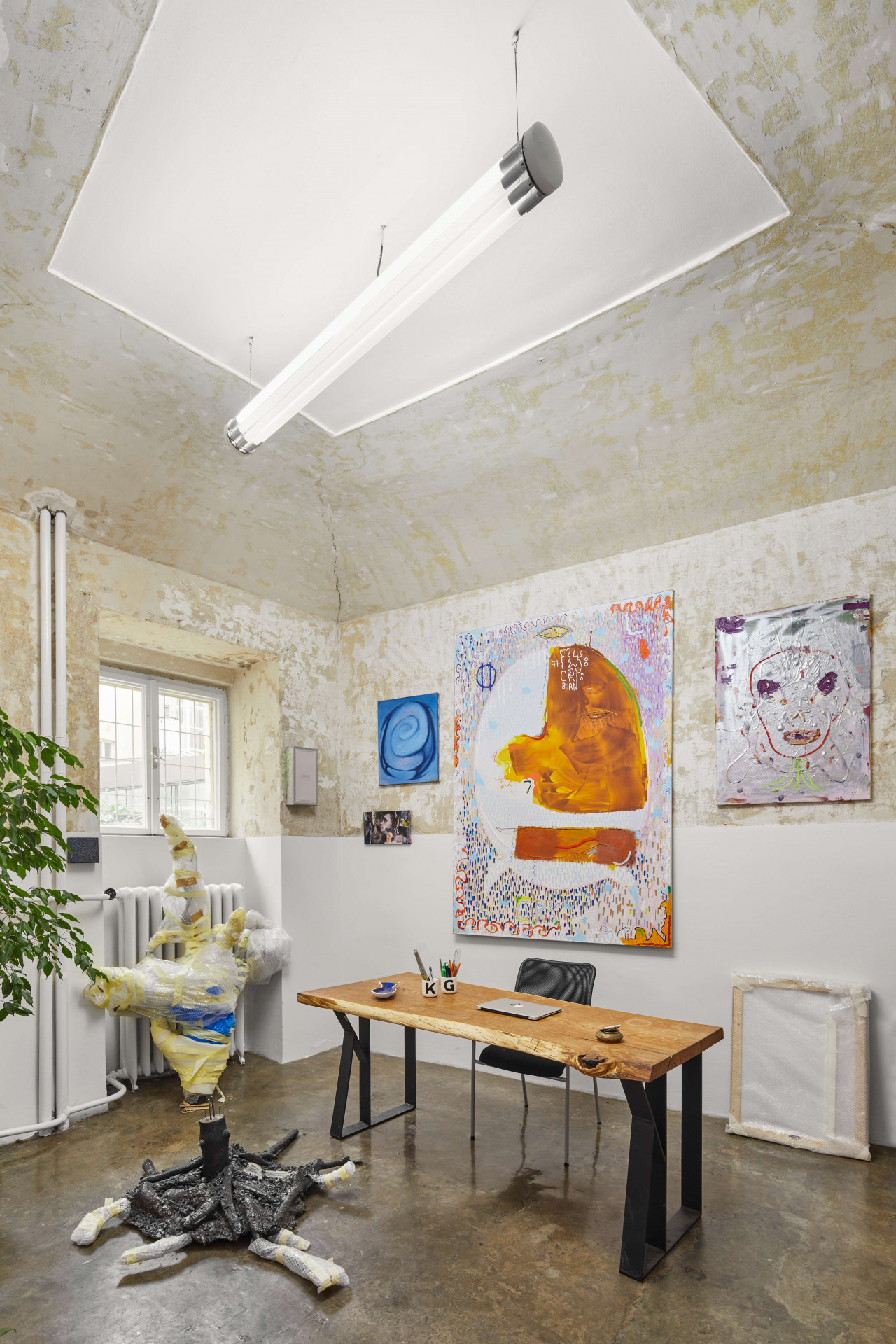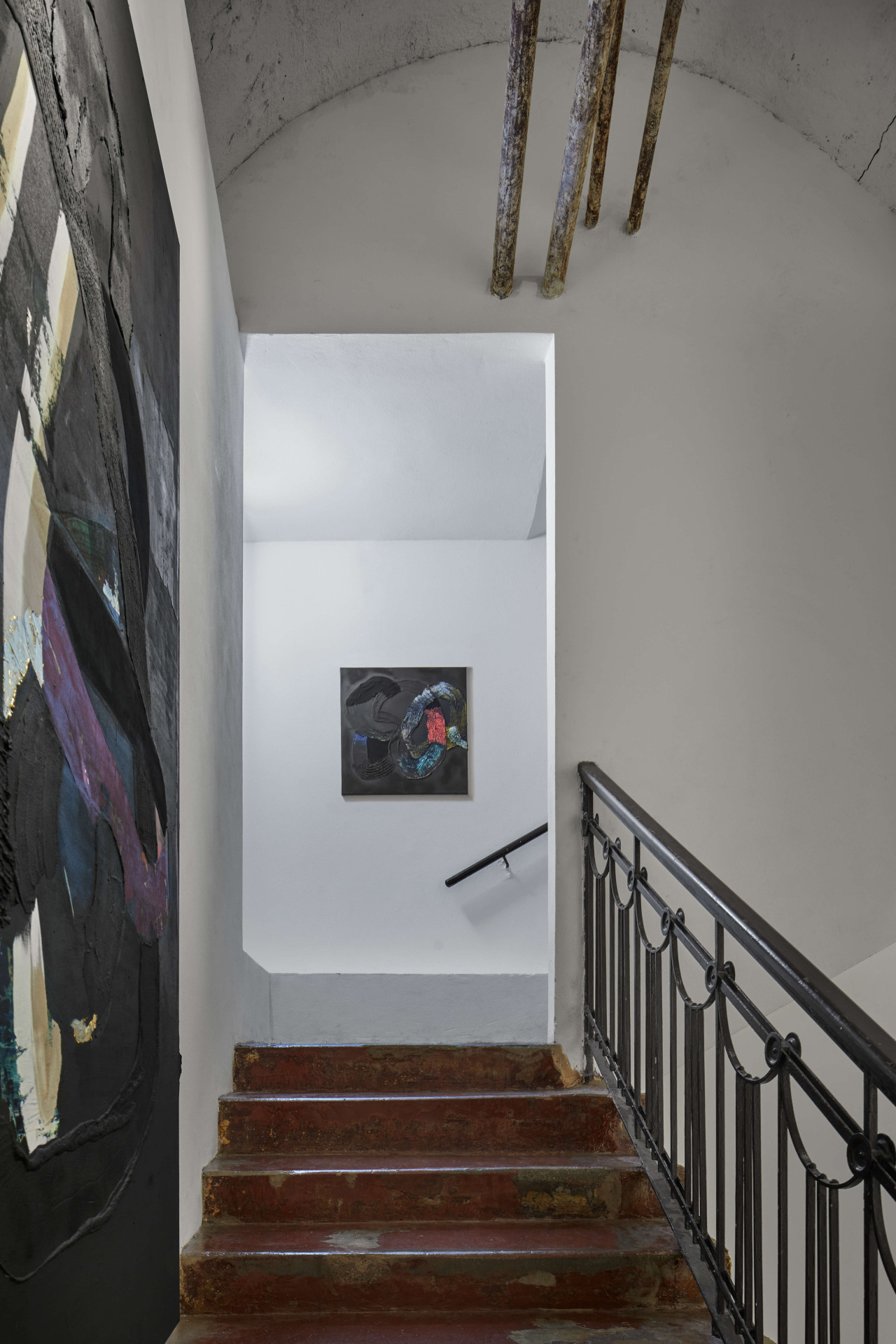Opadané štuky, oprýskané omítky, staré trubky a zbytky podlahových mozaik. Vedle toho zářivě bílé stěny, spousta světla a umělecká díla současných výtvarníků. Galerie Karpuchina na Praze 1 je drsná a jemná zároveň.