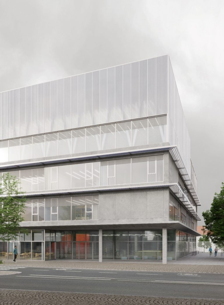 Kromě samotné budovy byl součástí soutěže i návrh úprav venkovních prostor a obnovení uličky Přádelní pro pěší, cyklisty či nezbytné zásobování.