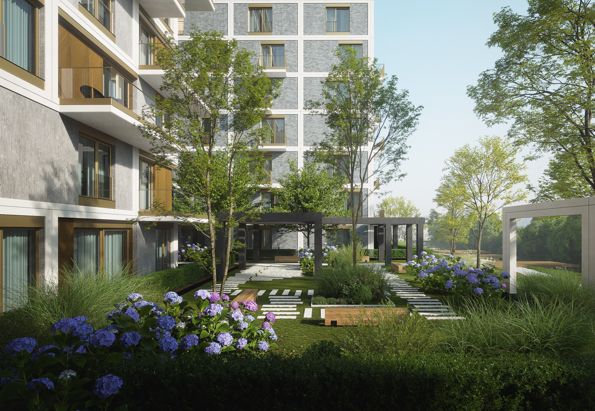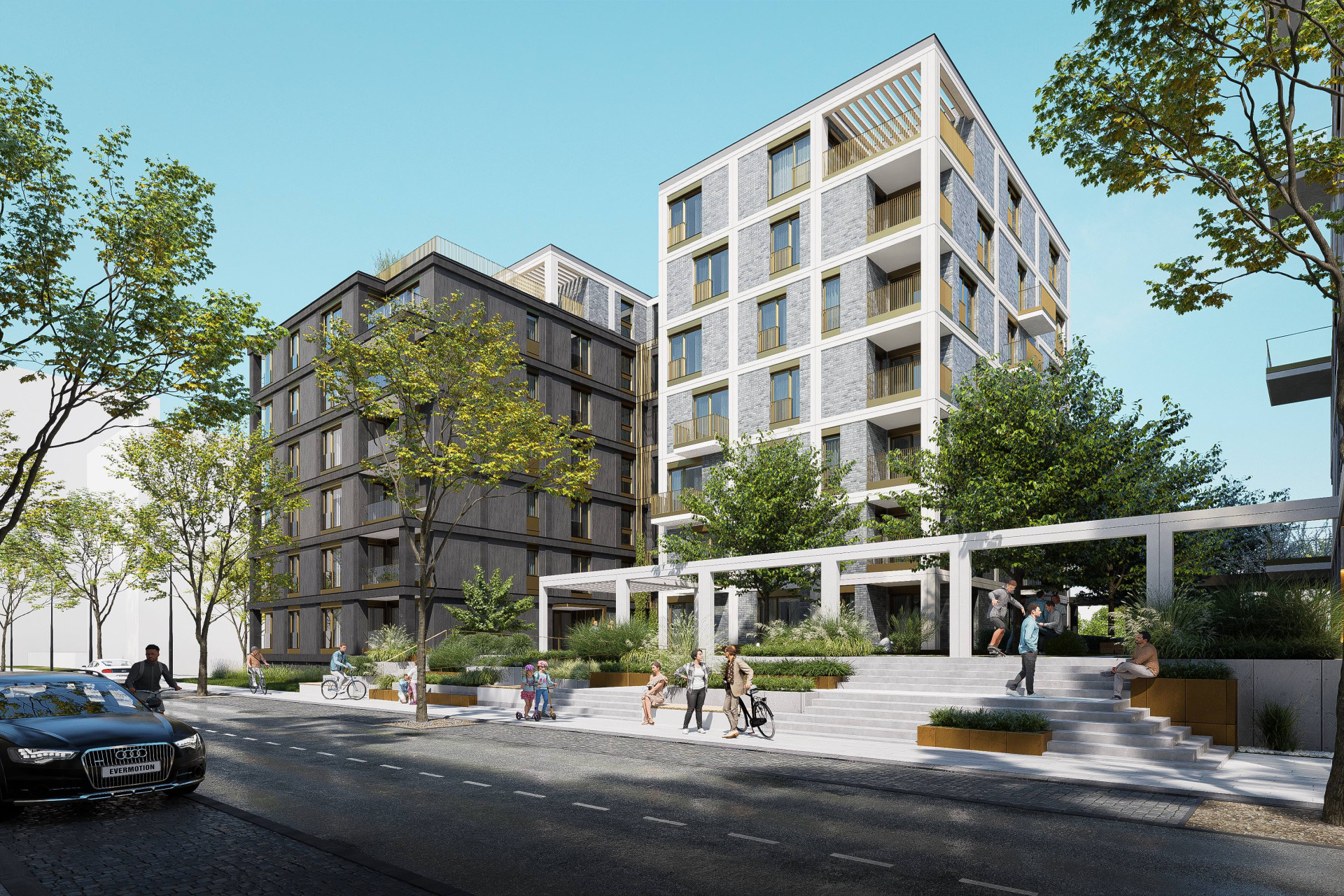 MS architekti navrhli členitou kompozici dvou obytných domů objímajících zelený vnitroblok, který se plynule vlévá do pravého břehu Svitavy, kde vytváří atraktivní veřejný prostor plný zeleně se zálivy k posezení a s přístřešky pro sousedská setkávání. Dvojice obytných domů nabídne řadu vzdušných a prosvětlených bytů různých kategorií s velkorysými dispozicemi a výhledy na město.