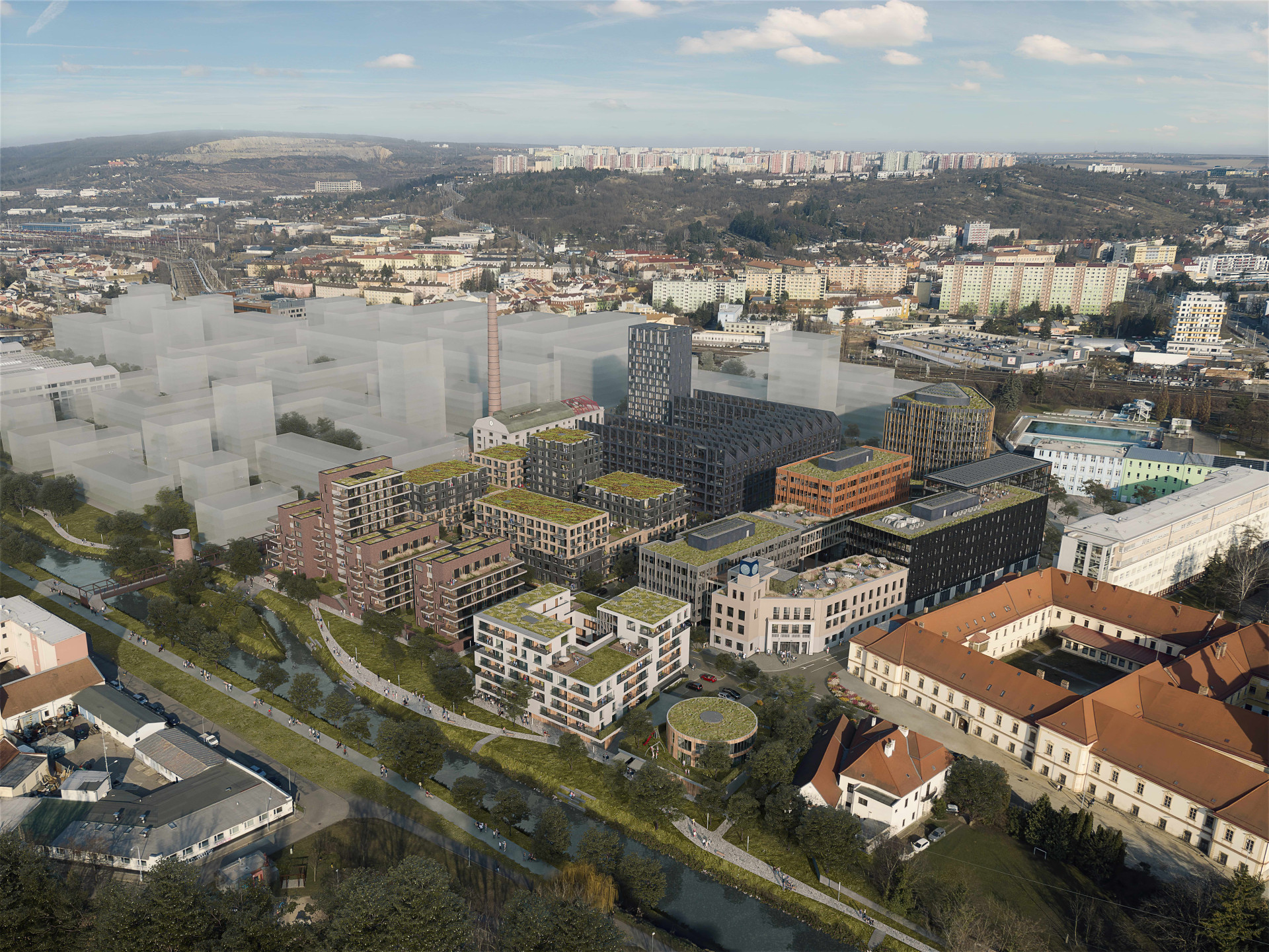 Bývalý areál na výrobu zbraní pro rakousko-uherskou armádu v Brně se mění na moderní městskou čtvrť Nová Zbrojovka. MS architekti navrhli rezidenční část nové lokality na březích řeky Svitavy s naplněnou ambicí, vytvořit přívětivé místo k životu reflektující nároky 21. století.