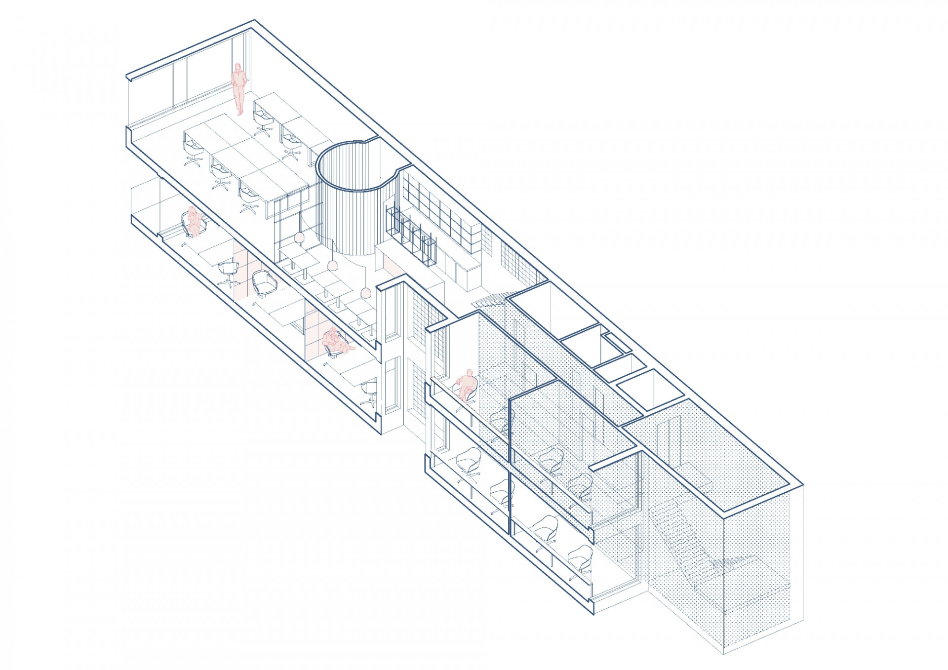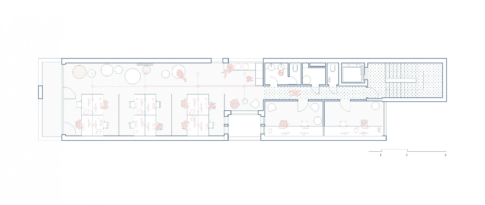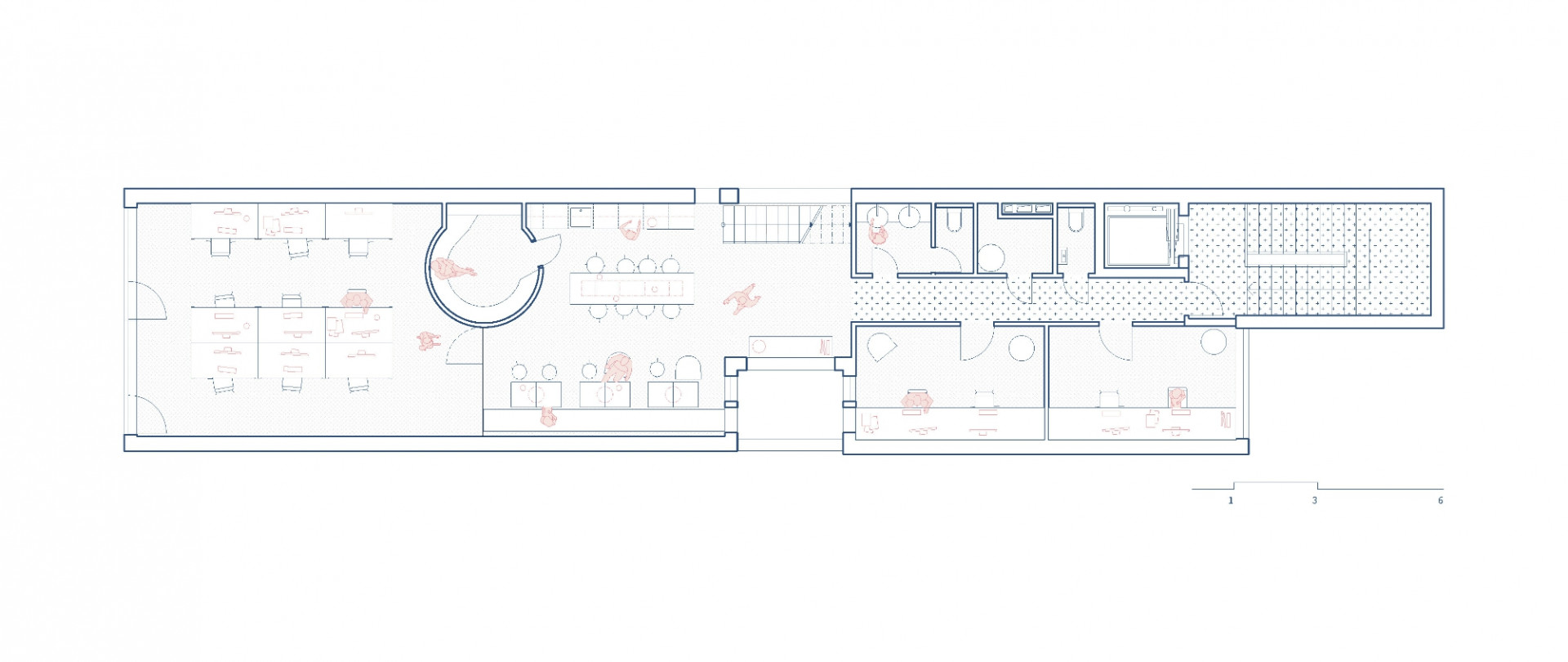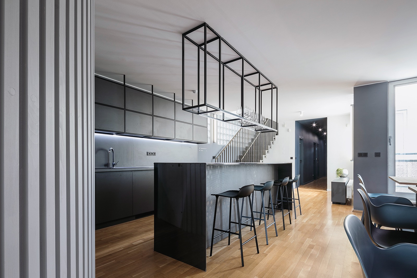 Pražské architektonické studio COSMO navrhlo v centru Zlína nové kanceláře digitální agentury Madeo, jejichž řešení reflektuje industriální prostředí města ve spojení se skandinávskými vlivy. Kanceláře zabírají dvě patra dlouhého a úzkého půdorysu domu, do kterých architekti navrhli jak open-space prostory, tak i intimnější samostatné místnosti. Jádrem pracovního prostoru se stal ocelový bar, odkud vede přímý vstup na střešní terasu.