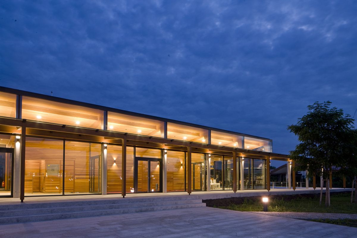 Projekt na nové kongresové centrum ve městě Lednice musel zohledňovat fakt, že celé území spadá na seznam kulturních památek UNESCO. Stavba je pojata jako jednoduchá dřevěná struktura navazující na stávající hotel