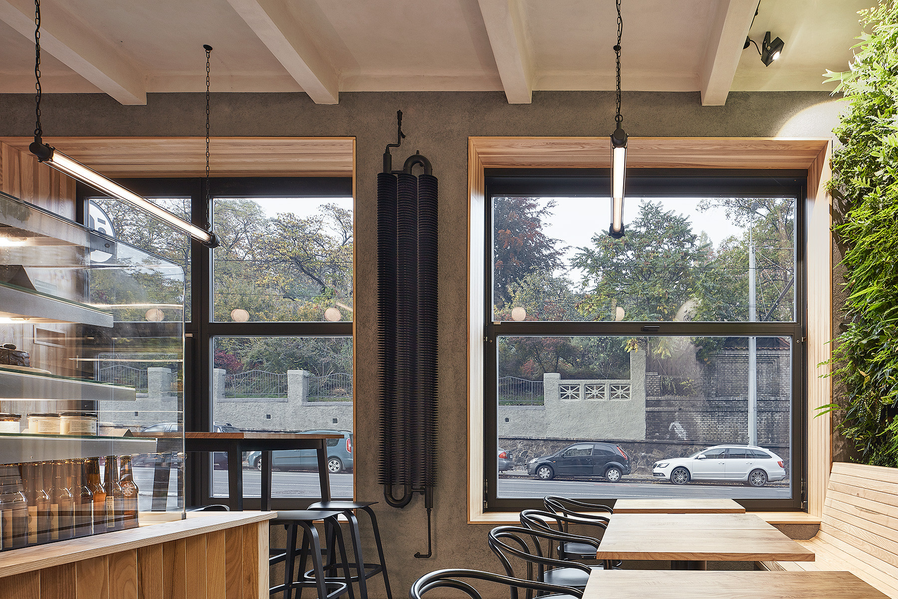 Architekti Pavel Nový a Vít Svoboda z architektonického ateliéru 0,5 Studio navrhli novou kavárnu Coffee Source na rozhraní pražských Vinohrad a Vršovic - v lokalitě vyhlášené pro svůj pestrý kulturní a gastronomický život. Kavárna v parteru činžovního domu ze 30. let minulého století nabízí interiér pojatý ryze současným způsobem, hosté v něm ale přesto můžou najít několik prvků odkazující k době vzniku celého domu. Nejvýraznějším prvkem kavárny je stěna pokrytá živými rostlinami, výlohová okna pak lze v letních měsících vysunout a přímo tak propojit interiér s ulicí.