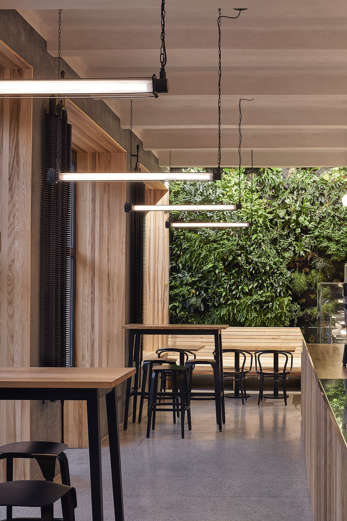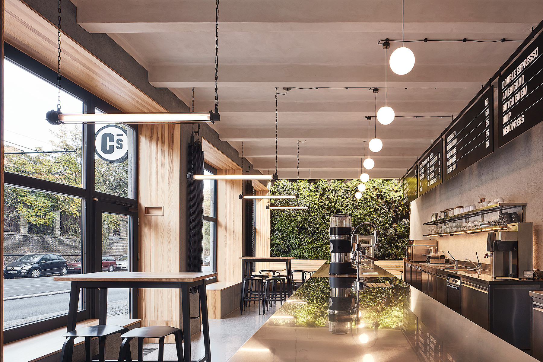 Nové pražské kavárně Coffee Source od 0,5 Studia vévodí velká vertikální zahrada