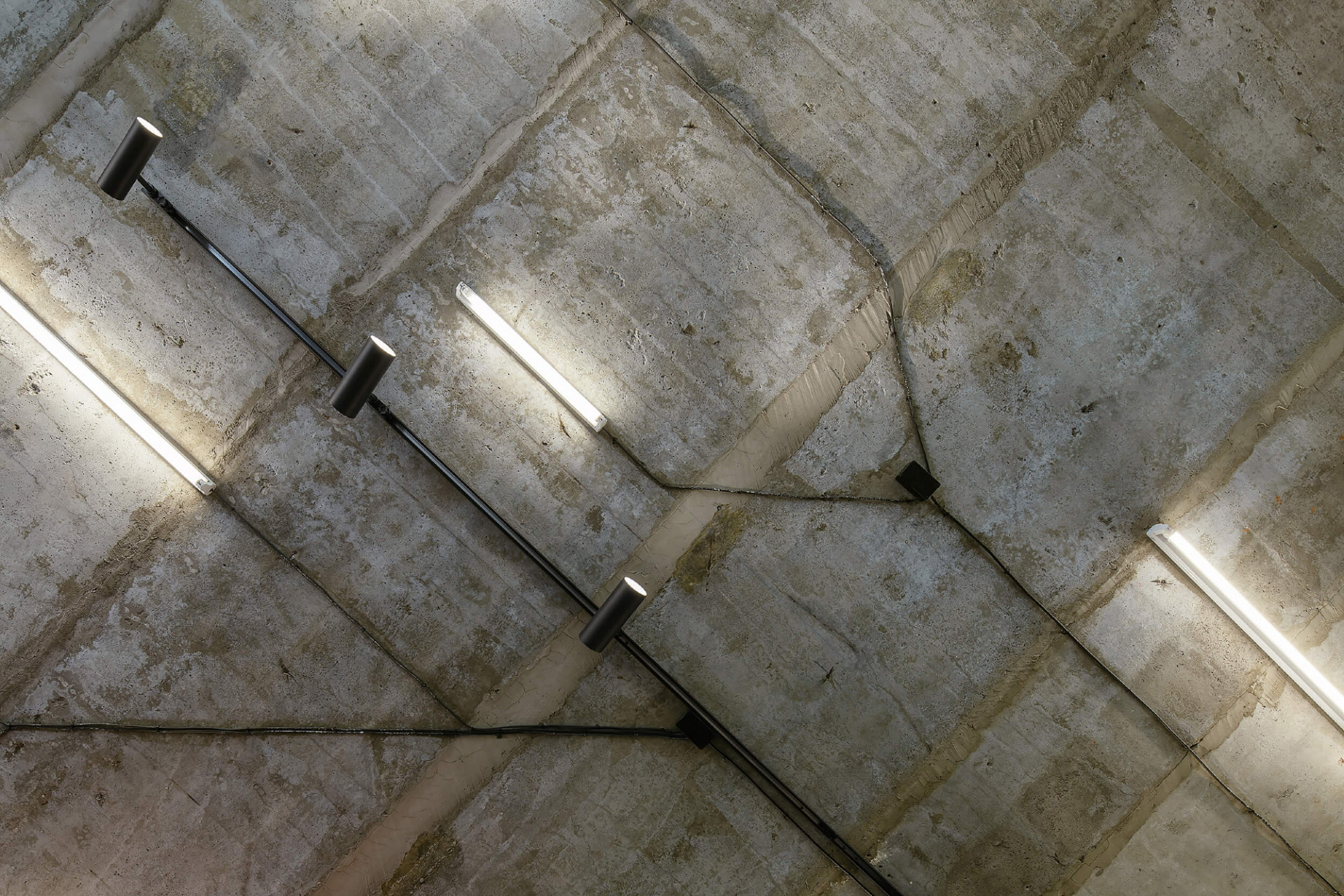 Nový basketbalový obchod v pražském paneláku se nese ve znamení odhaleného betonu a neonů