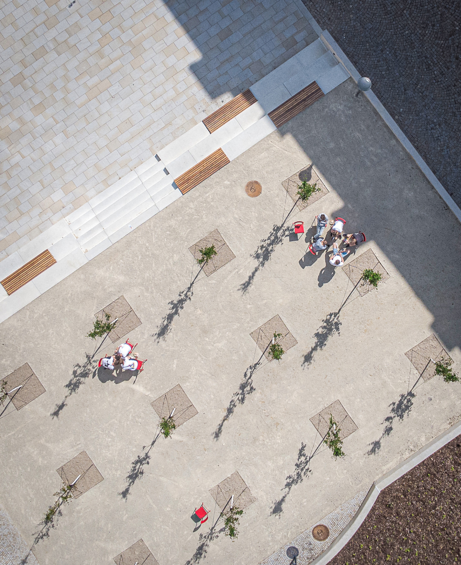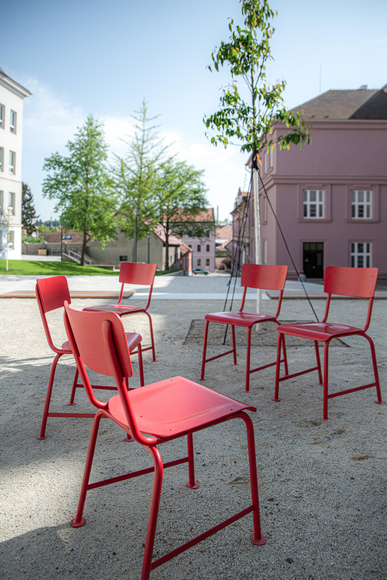 Nový komunikační koridor mezi školami je ve městě oblíbeným místem pro trávení volného času nejen díky terénním a povrchovým úpravám. Celé náměstí se zútulnilo také pomocí městského mobiliáře, který zvýšil jeho komfort na maximum.