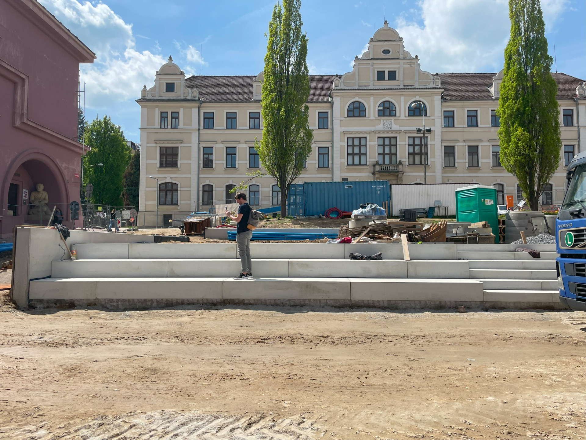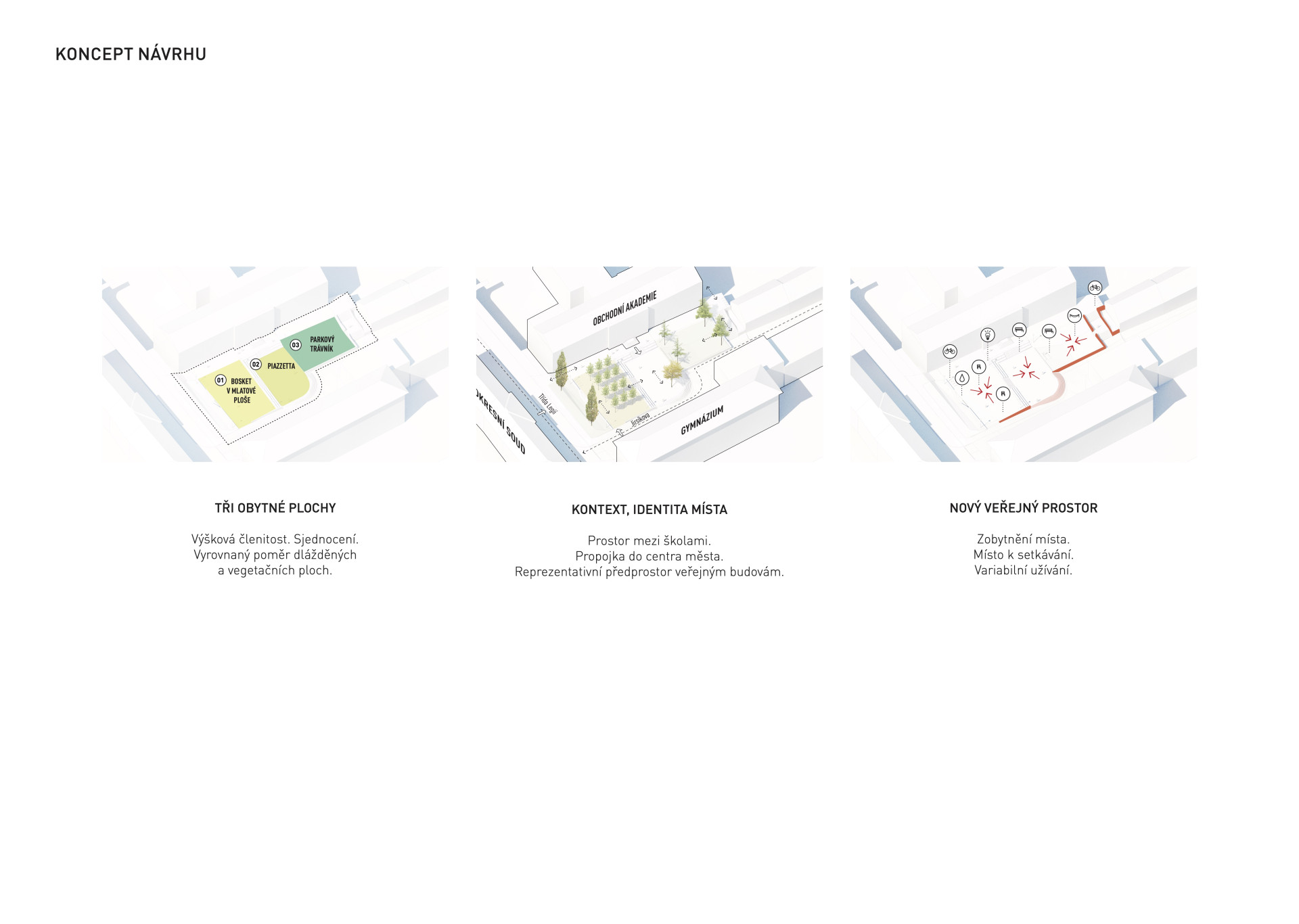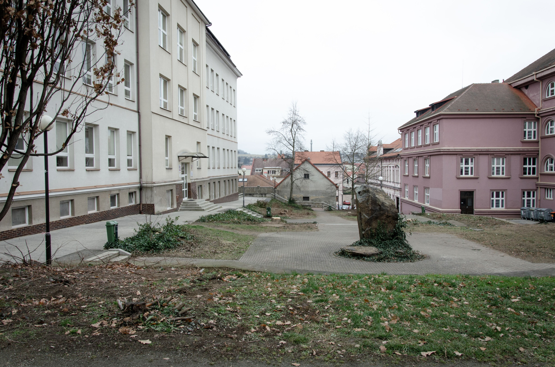 Co se zde změnilo? „Cílem našeho návrhu bylo zabydlení a sjednocení hlavního předprostoru pelhřimovských škol,“ popisují autoři a autorky. Chtěli prý vytvořit příjemné místo a oživit veřejný život v Pelhřimově. Navrhli zídky, které rozdělují náměstí na jednotlivé plochy.
