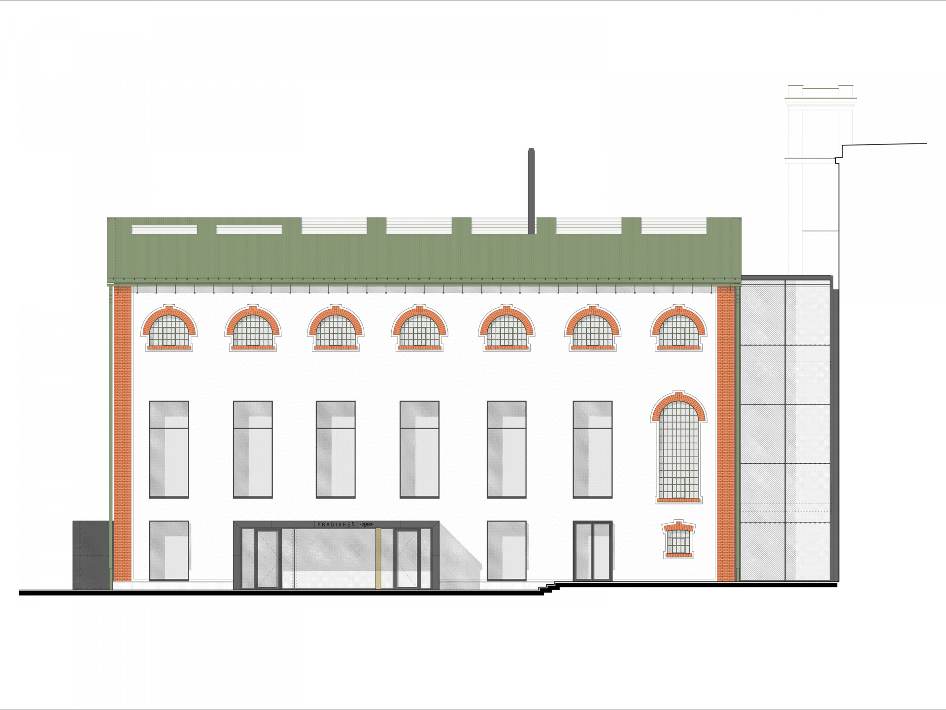 Součástí bývalého továrního areálu zůstaly historické stavby představující vrchol architektury inženýrských konstrukcí přelomu 19. a 20. Století – a právě ty si měly v nově vznikající čtvrti zachovat dominantní postavení. Soutěž na rekonstrukci památkově chráněné přádelny a historické silocentrály vyhrálo domácí studio Bouda Masár architekti, které tovární budovy citlivě transformovalo na administrativní objekt.