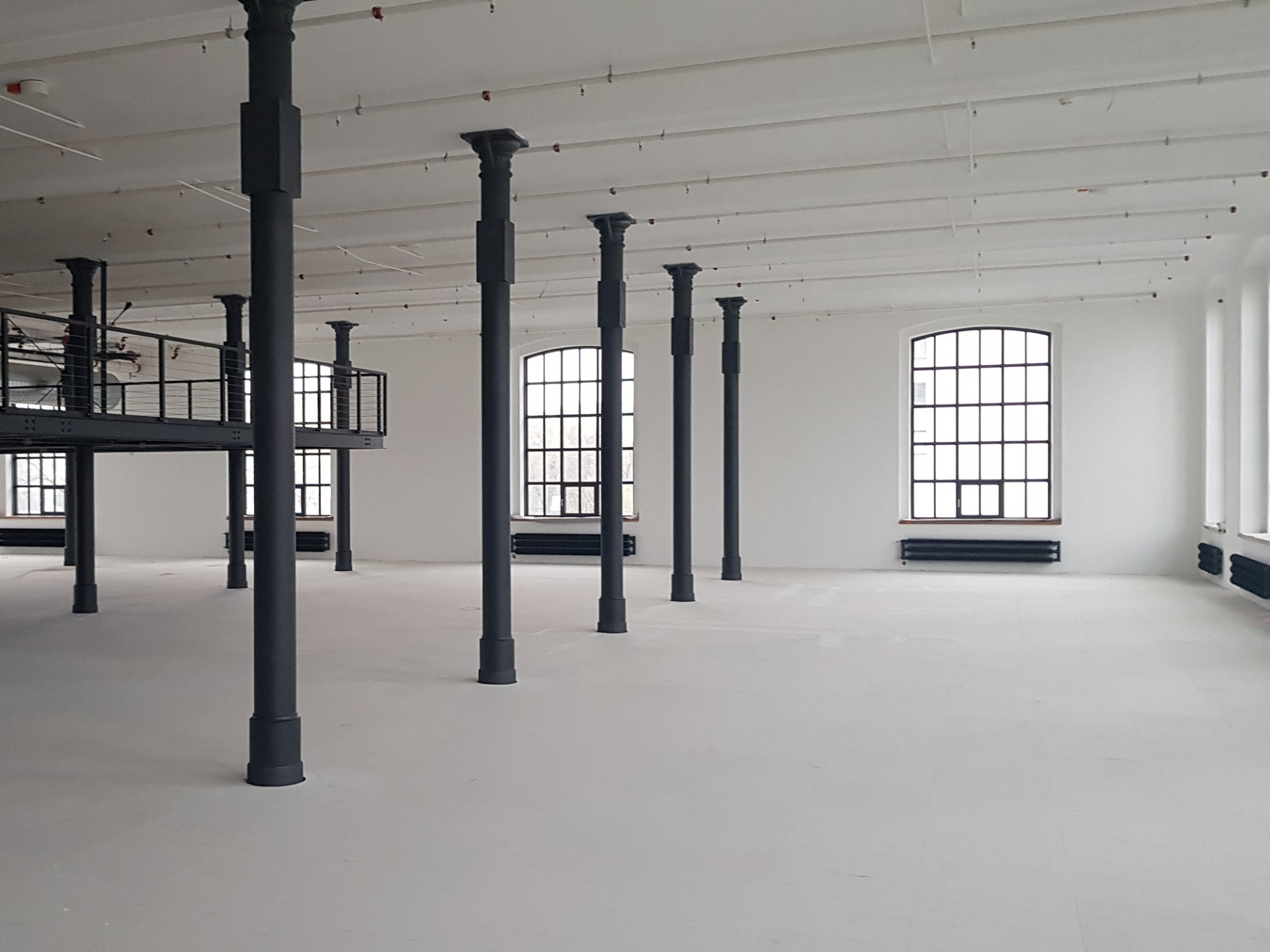 Architekti cíleně dbali na zachování otevřené halové dispozice, ve které hrají litinové konstrukční prvky hlavní roli. Jelikož se přádelna měla proměnit v administrativně-obchodní dům, museli ale přistoupit k určitým změnám. Aby zamezili dělení prostoru umístili potřebné technické zázemí na nově zbudovaný mezanin. Zbytek prostoru tak mohl zůstat otevřený, popřípadě ho dělí pouze transparentní příčky.
