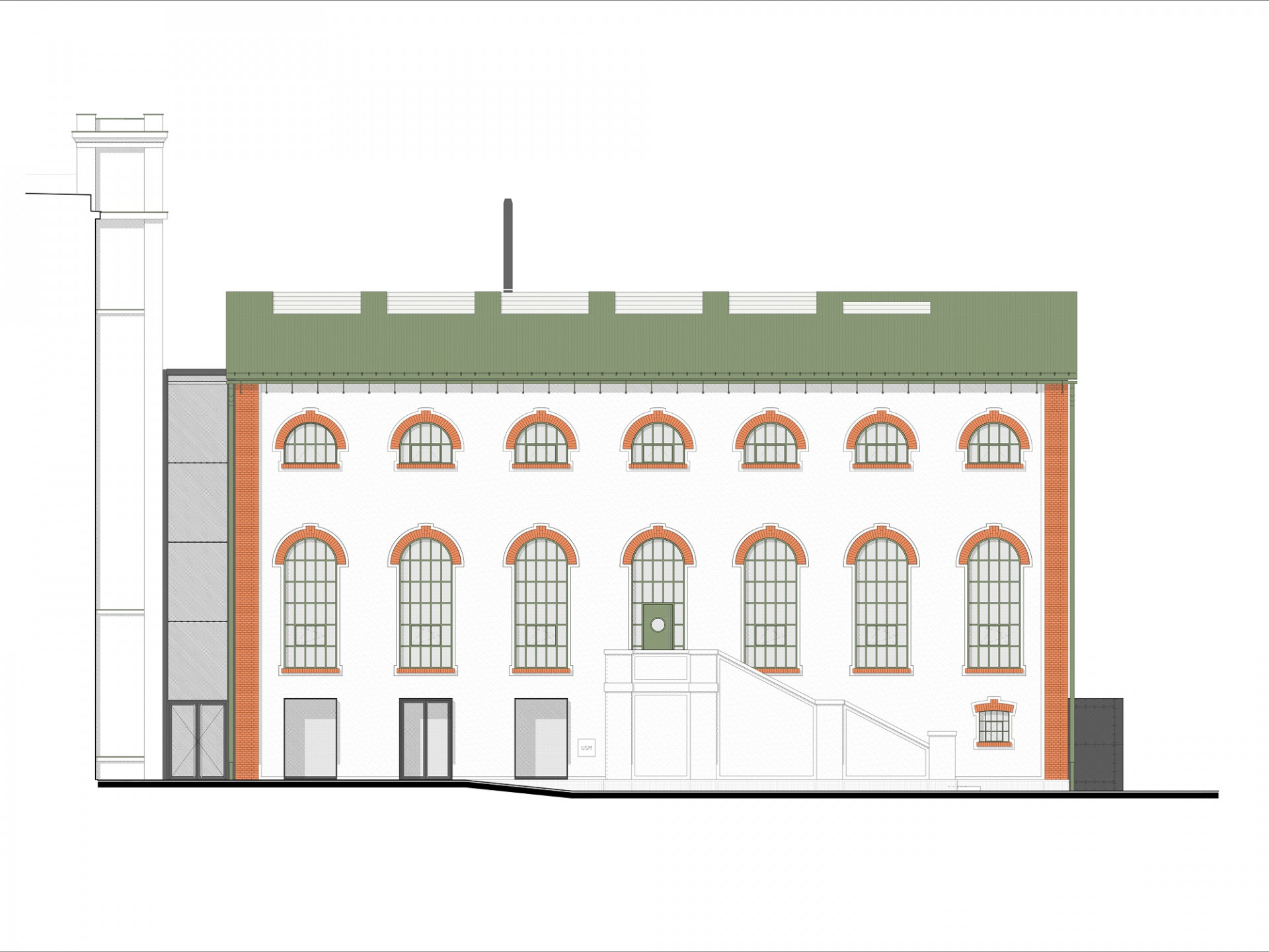 Ačkoliv se na bývalou silocentrálu památková ochrana již nevztahuje, architekti se i zde rozhodli respektovat původní tvarosloví s výraznou obloukovou střechou. Budovu určenou pro parní stroj, který niťový závod zásoboval energií, původně s přádelnou spojoval samostatný trakt. Ten při rekonstrukci nahradila nová prosklená část s výrazným betonovým schodištěm uvnitř.
