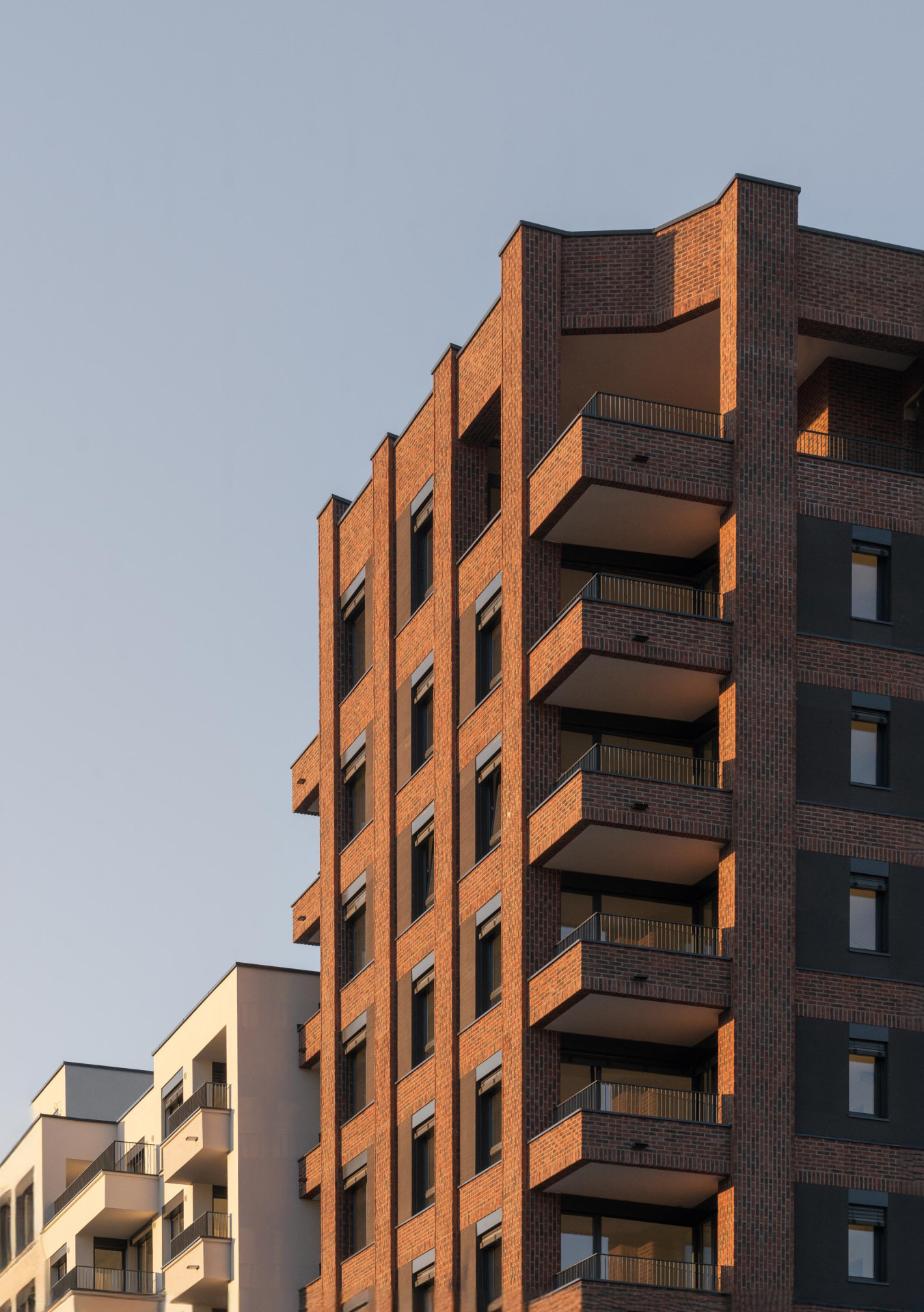 Zároveň tu rostou nové bytové domy podle projektu studia CHYBIK + KRISTOF – jsou to čtyř až šestipodlažní domy plus tři devítipodlažní domy zvané „pivovarské věže“ - jejich cihlová fasáda připomíná staré komíny. Jsou obložené dvěma odstíny cihelného pásku, najdeme tu také dvě tloušťky: "Povedlo se tím fasádě dodat plasticitu a detail, to se moc povedlo, i díky investorovi," říká architektka Hana Pleskačová z ateliéru CHYBIK + KRISTOF .