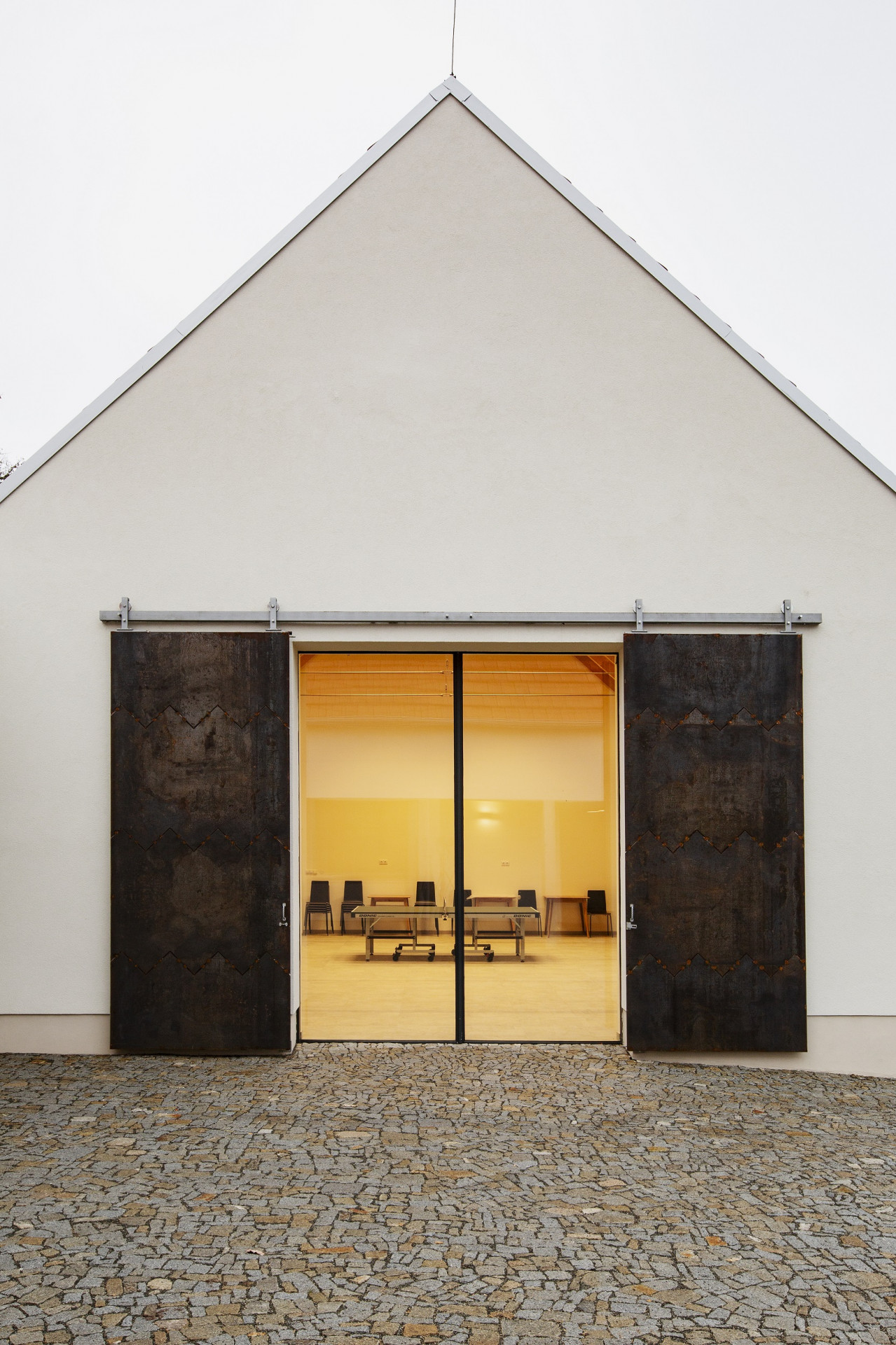 Střídmé archetypální hmoty obohacují především masivní ocelové okenice s rezavou patinou. „Výrazné cortenové okenice jsou soudobým doplněním jinak tradičního vyznění, které zůstává uchopitelné pro společenství místních občanů,“ dodává Soňa Urbánková na závěr. Obecní dům ve Skaličce u Tišnova se svou citlivou, ale přesto zajímavou formou dokázal do obce začlenit podobně nenásilně, jako budova městského úřadu v Leopoldově od studia Zerozero.