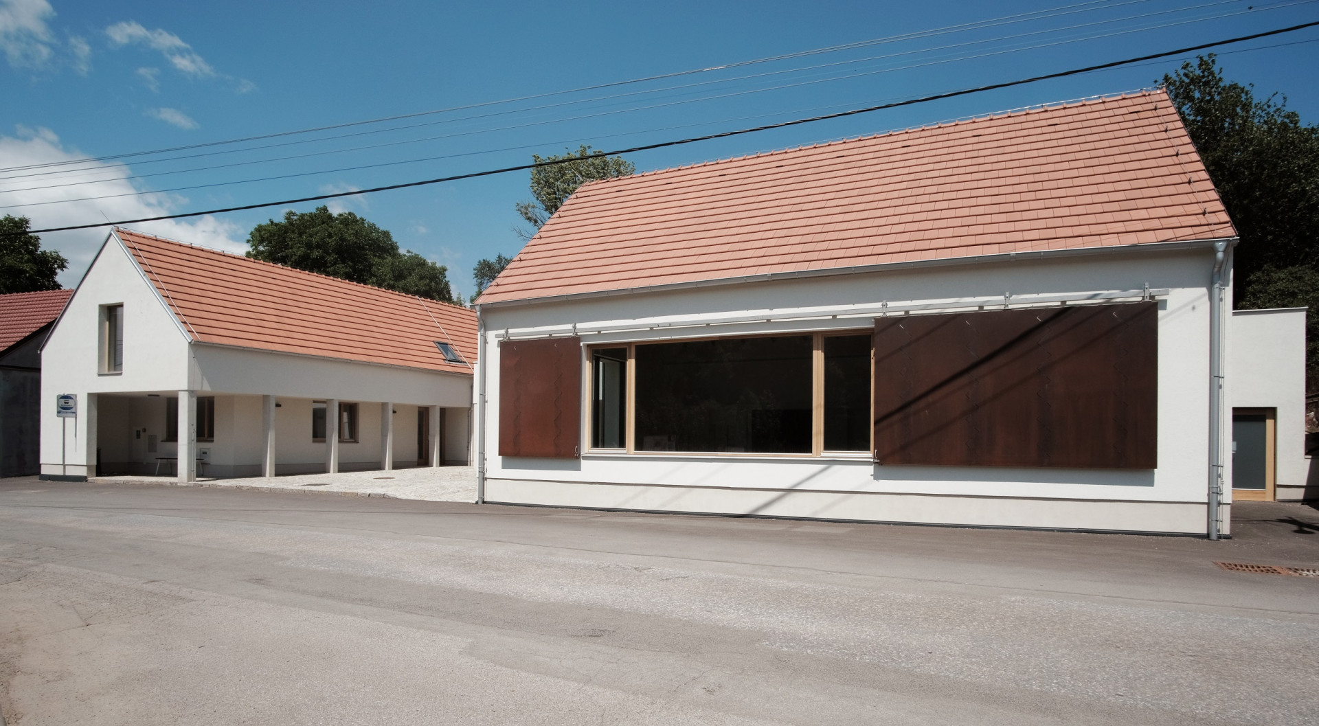 Tři archetypální stavby propojené dlážděným nádvořím suplují v malé jihomoravské vesnici chybějící náves. Jedná se o budovu obecního domu, který svým architektonickým i urbanistickým pojetím navazuje na charakter místní zástavby.