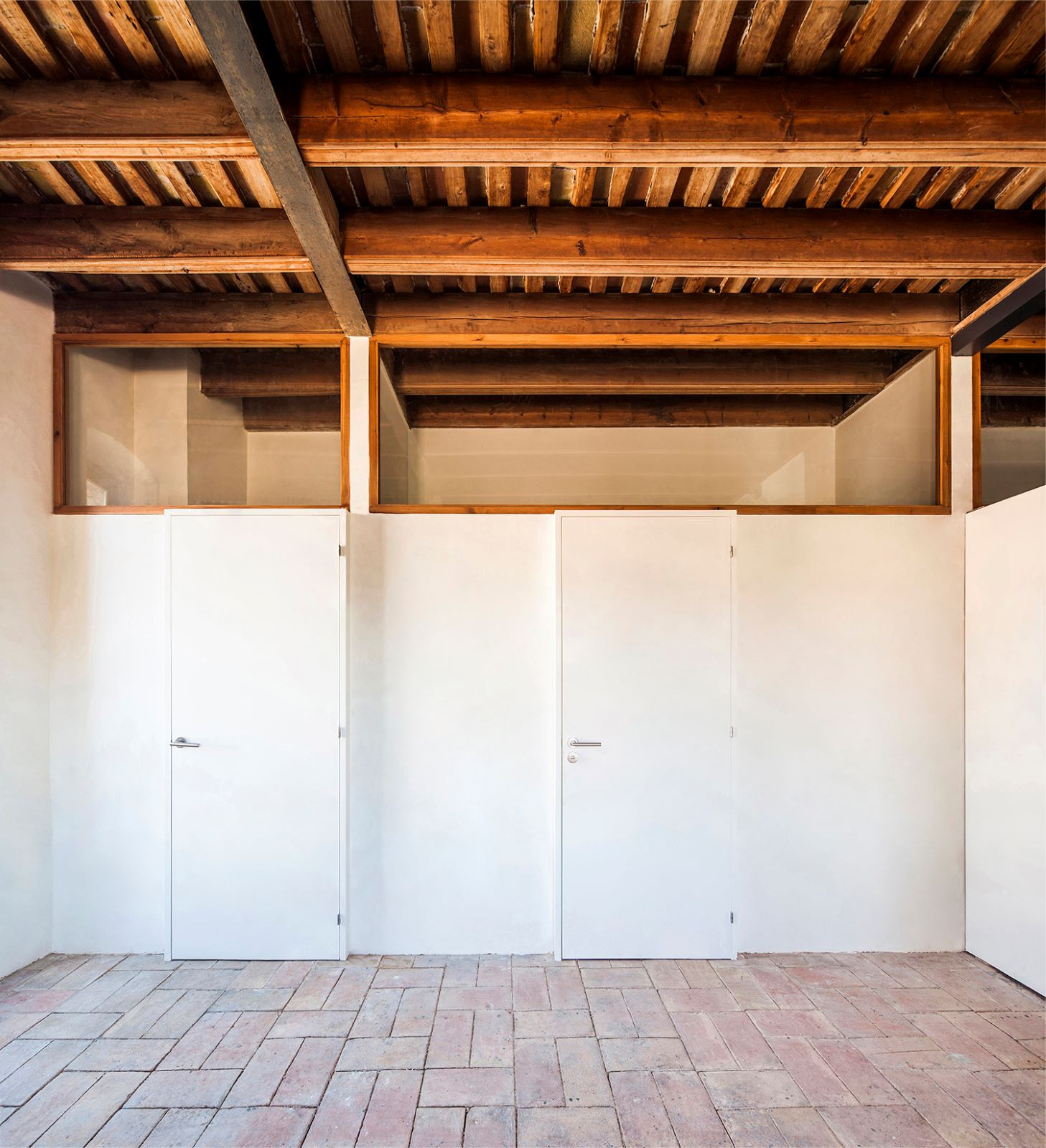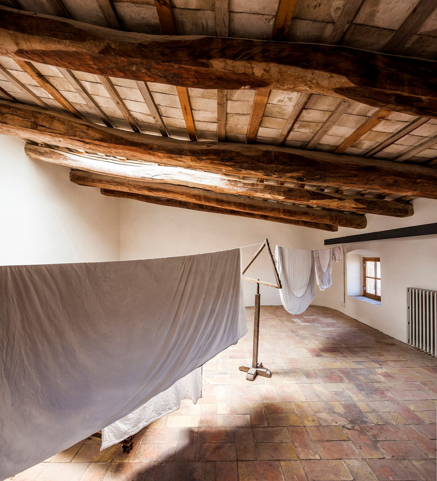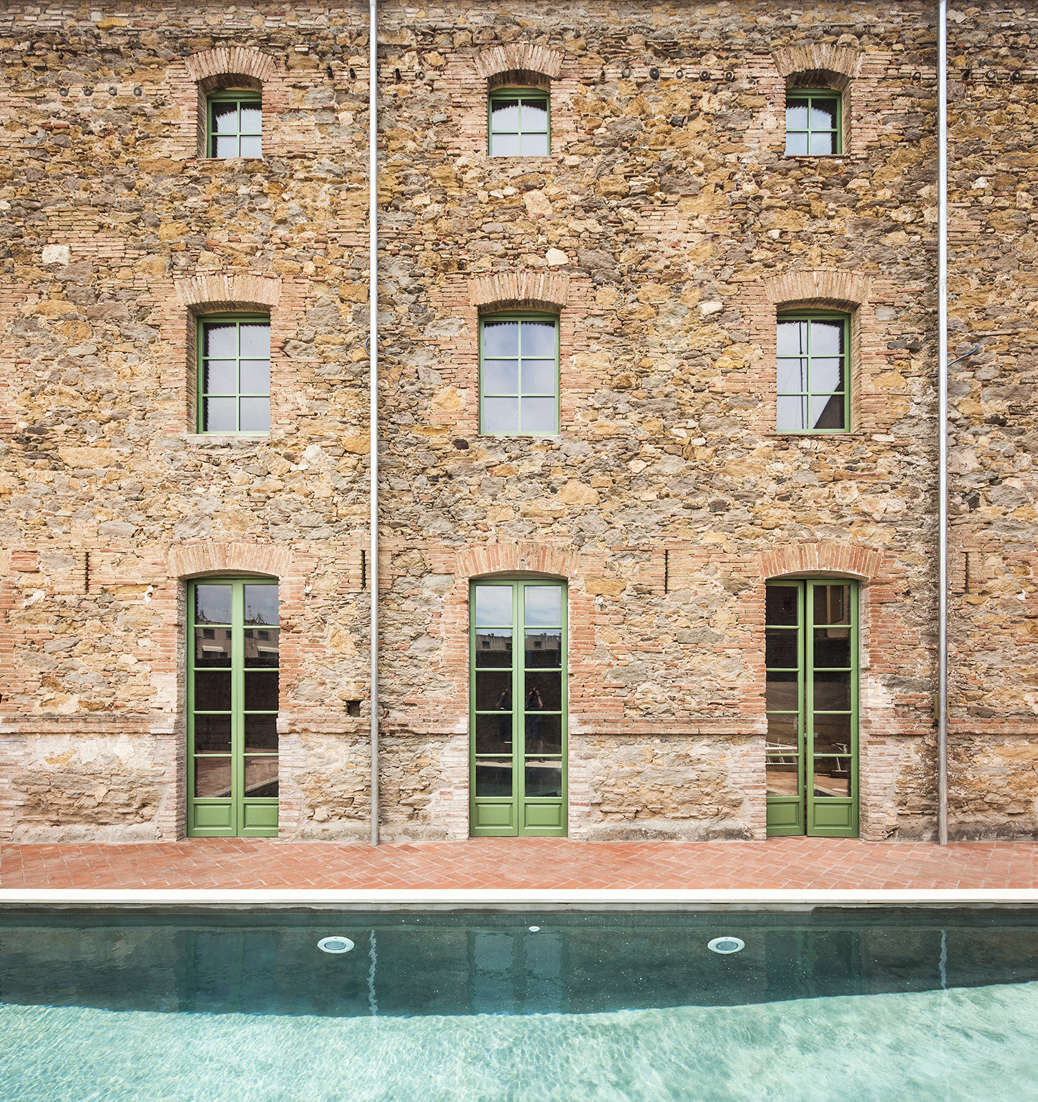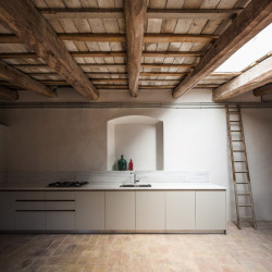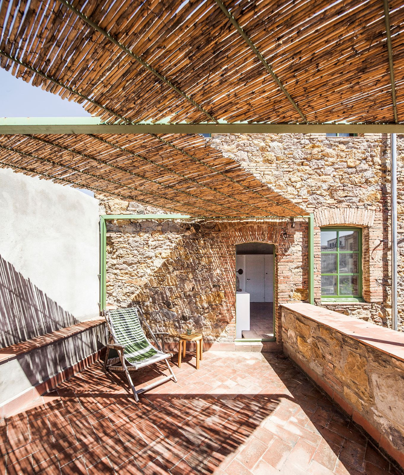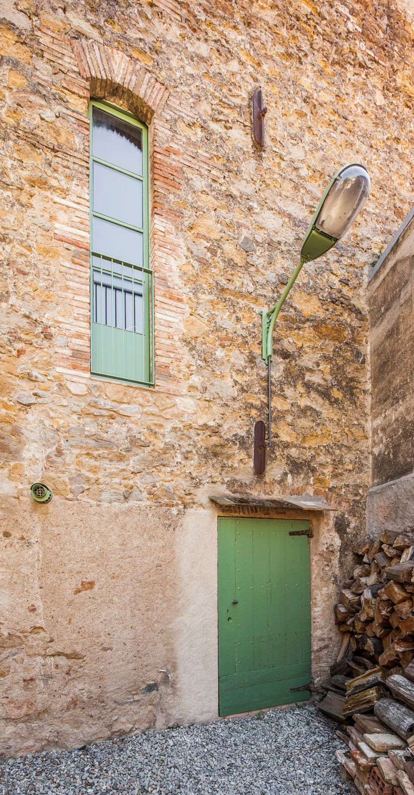 Obdivuhodný je na práci studia Anna&Eugeni Bach nejen jejich přístup ke konstrukci a prostoru, ale také zacházení s materiálovou stránkou objektu. Původní kámen, dřevo a keramika, které dohromady tvoří typický příklad místní středomořské architektury, jsou doplněny soudobými prvky z betonu a kovu natřeného na pastelovou zelenou, jež se od staré vrstvy jasně odlišují – ovšem nenarušují ji. Všechny materiály zůstávají přiznané, nenásilný kontrast, který mezi starou a přidanou složkou v rámci objektu vzniká jen potvrzuje celkovou pravdivost, s níž architekti k projektu přistoupili.