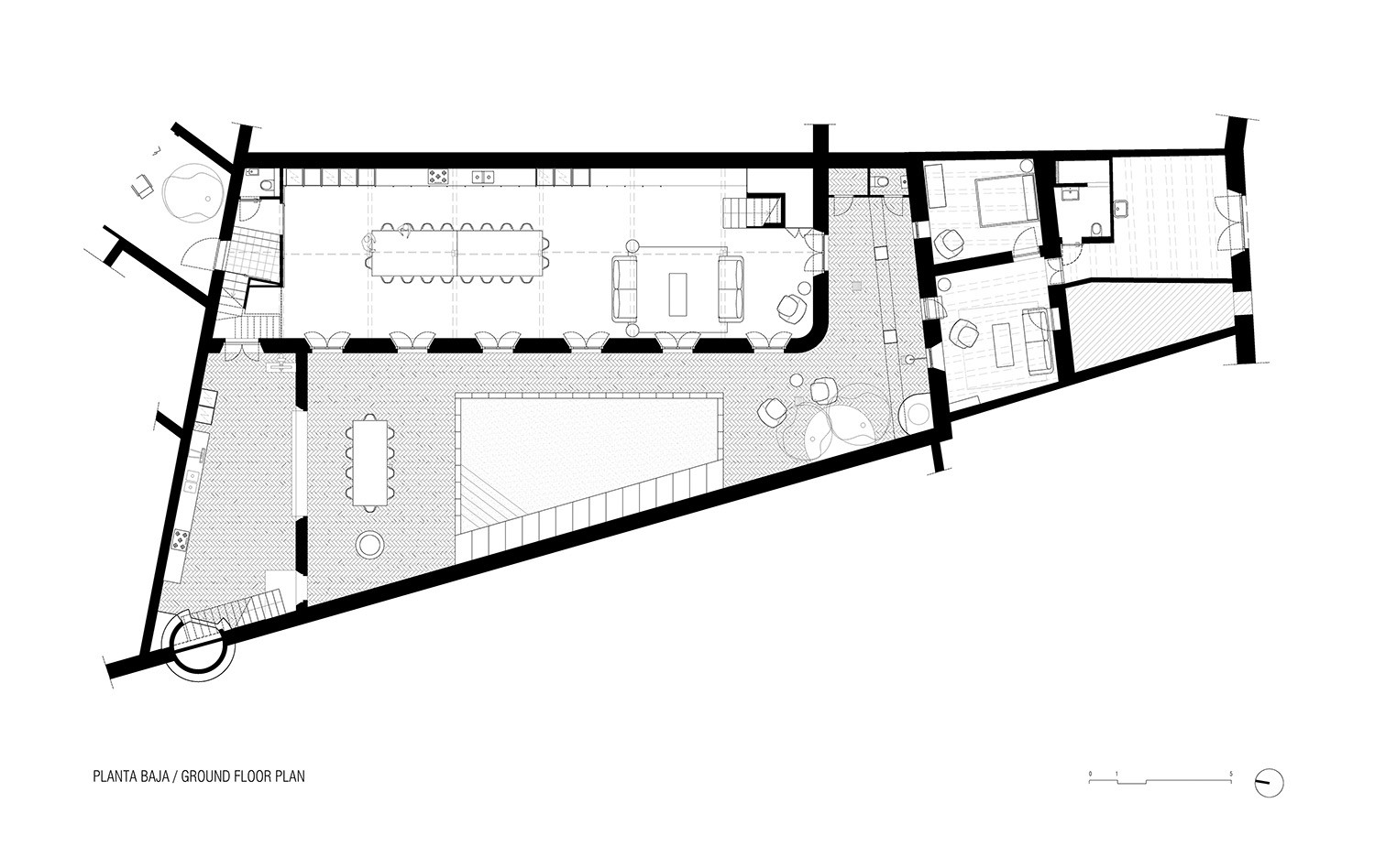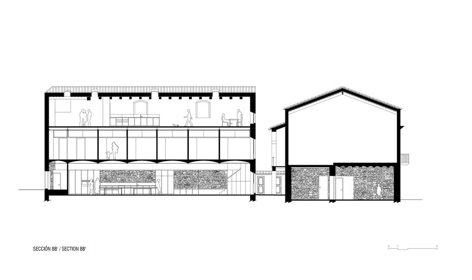 Projekt z La Bisbal představoval pro architekty nicméně velkou výzvu, jak přizpůsobit historický objekt v husté zástavbě malého historického města současným potřebám. Sami klienti chtěli přistoupit k objektu poměrně pietně a bylo tedy na architektech, aby svůj koncept rekonstrukce postavili na zachování původní atmosféry domu, kterou udává především jeho přírodní materialita. Architekti se museli vypořádat především se složitou konstrukcí stavby, neboť každé z trojice podlaží využívalo jiný systém nosných prvků – v přízemí se jednalo o kovové nosníky podpírající systém katalánských kleneb, druhé podlaží představovalo kombinaci kovových a dřevěných konstrukcí a nakonec střechu tvořila tenká deska z cihel krytá keramickými taškami.